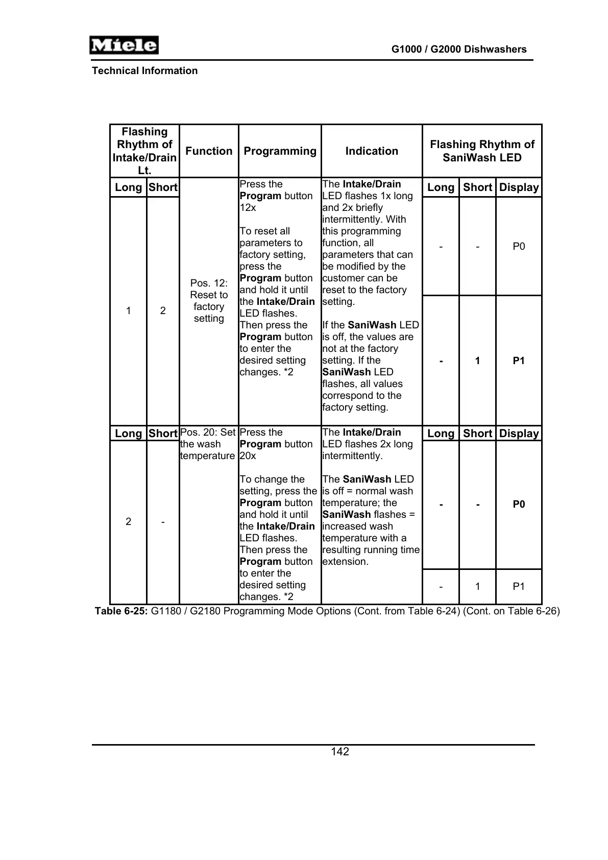 Table 6-25: G1180 / G2180 Programming Mode Options (Cont. from Table 6-24) (Cont. on Table 6-26)