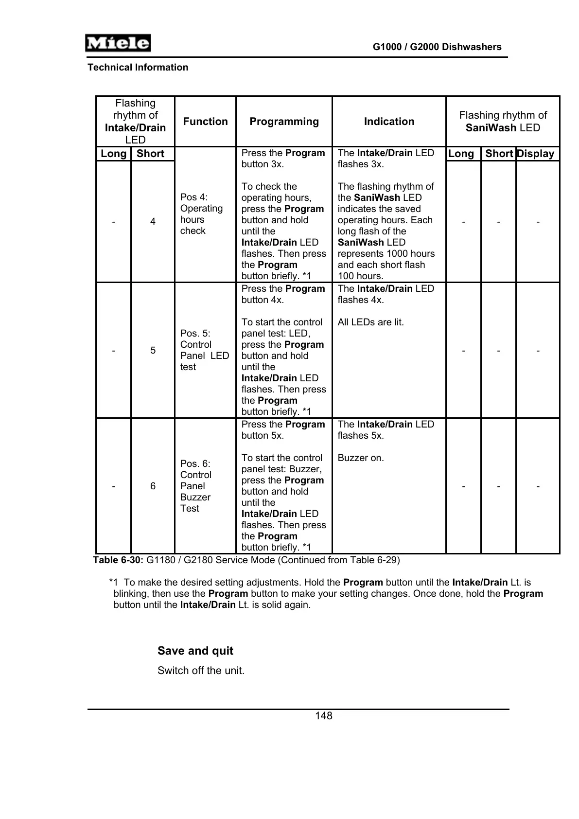 Table 6-30: G1180 / G2180 Service Mode (Continued from Table 6-29)