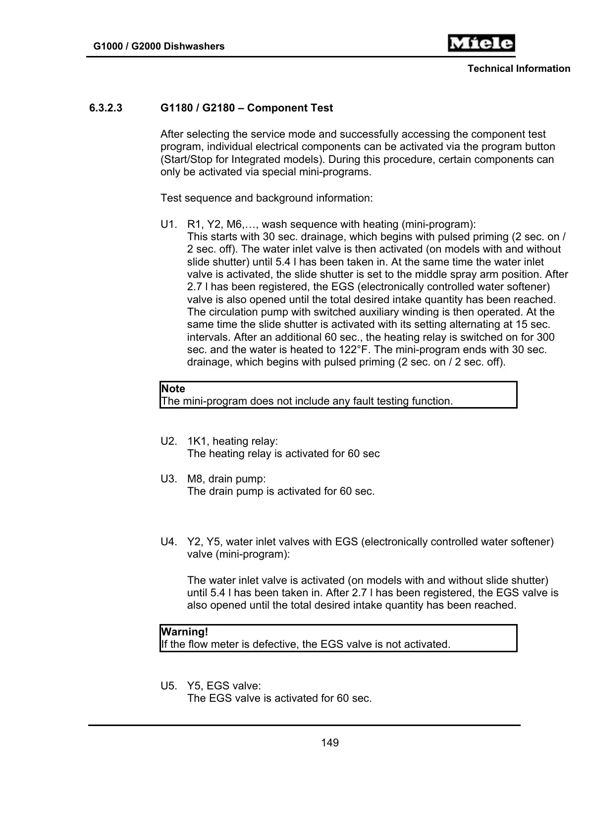 2 sec. off). The water inlet valve is then activated (on models with and without