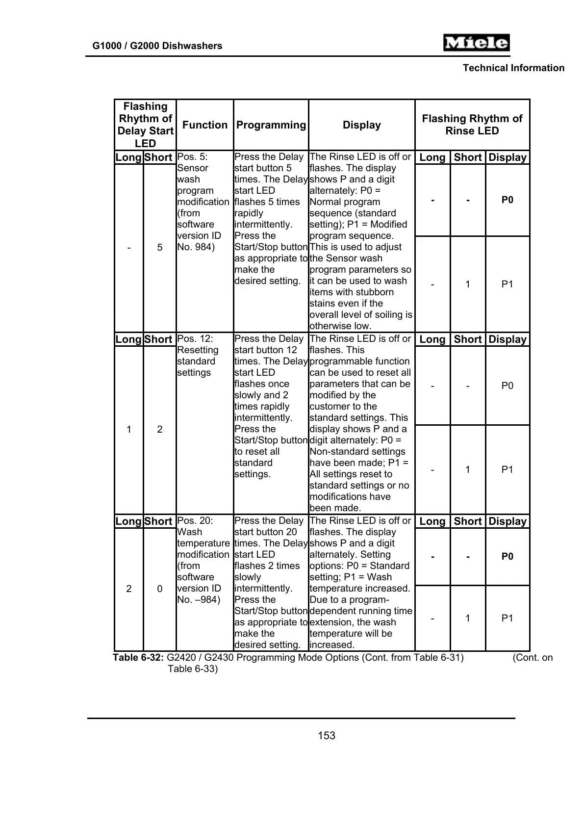 Table 6-32: G2420 / G2430 Programming Mode Options (Cont. from Table 6-31) (Cont. on