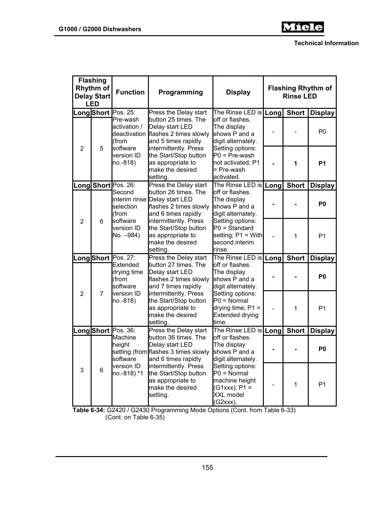 Table 6-34: G2420 / G2430 Programming Mode Options (Cont. from Table 6-33)