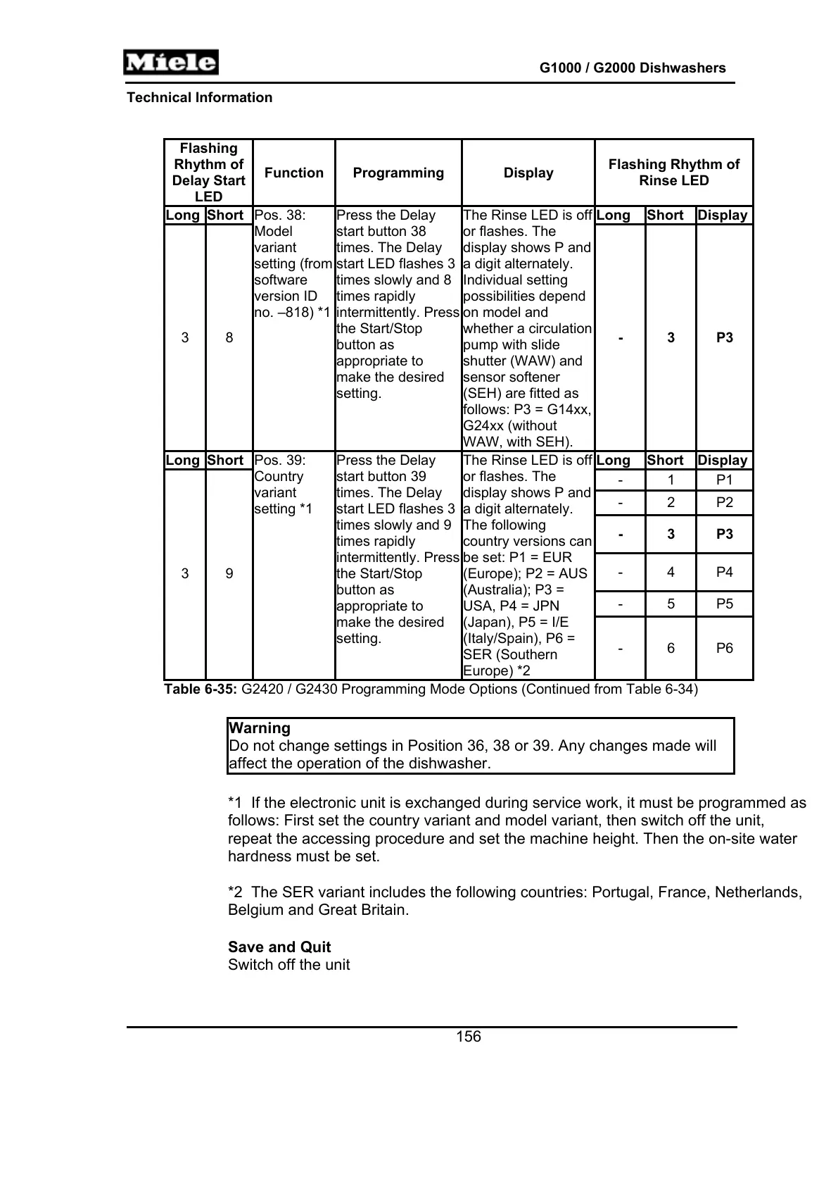 Table 6-35: G2420 / G2430 Programming Mode Options (Continued from Table 6-34)