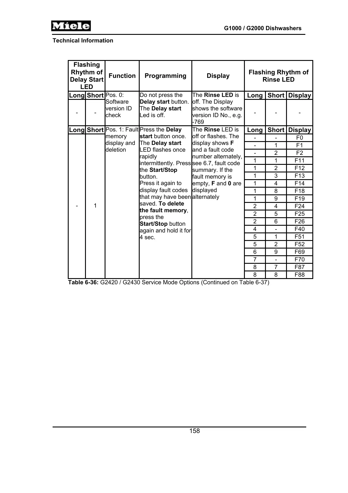 Table 6-36: G2420 / G2430 Service Mode Options (Continued on Table 6-37)