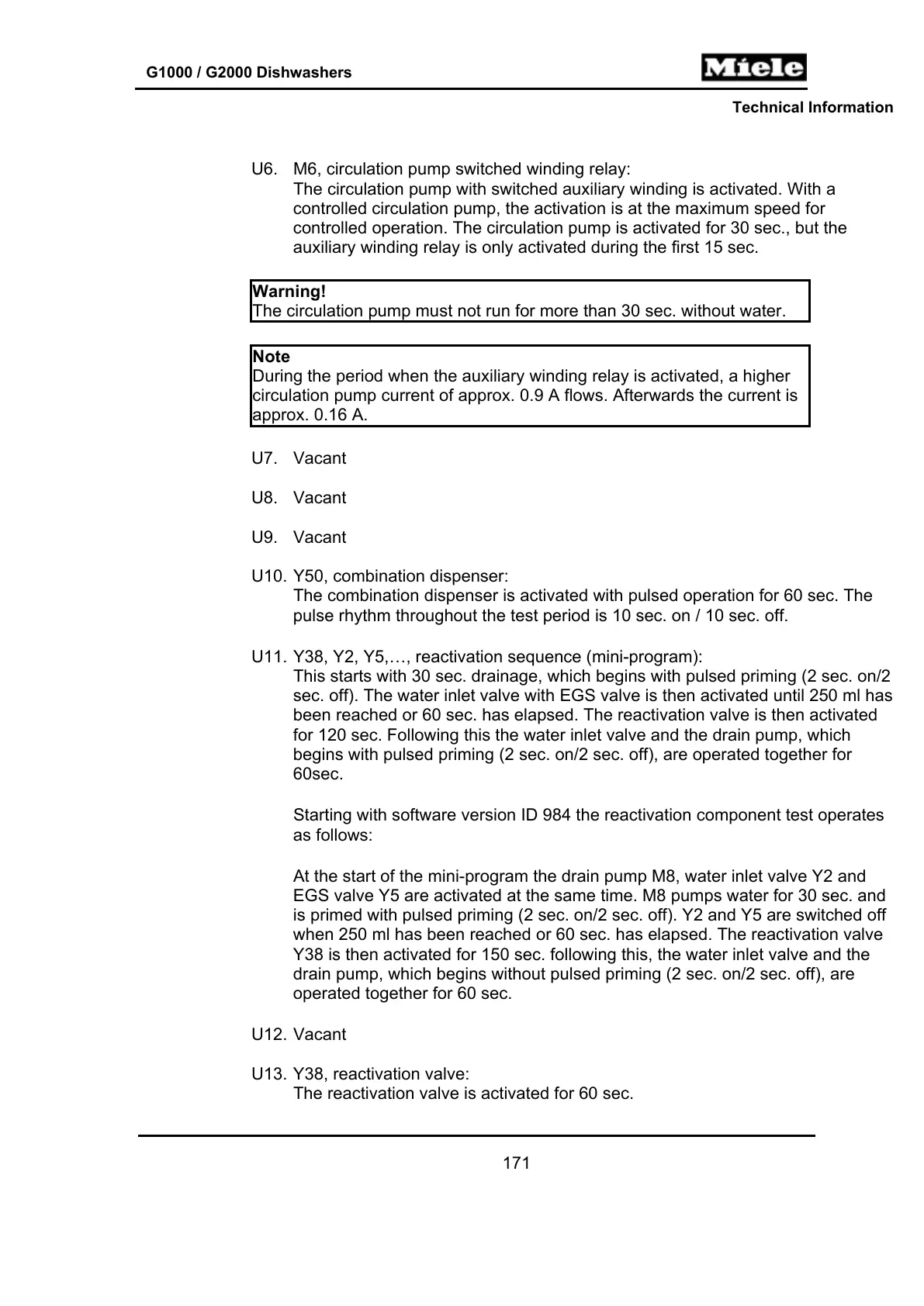 Y38 is then activated for 150 sec. following this, the water inlet valve and the