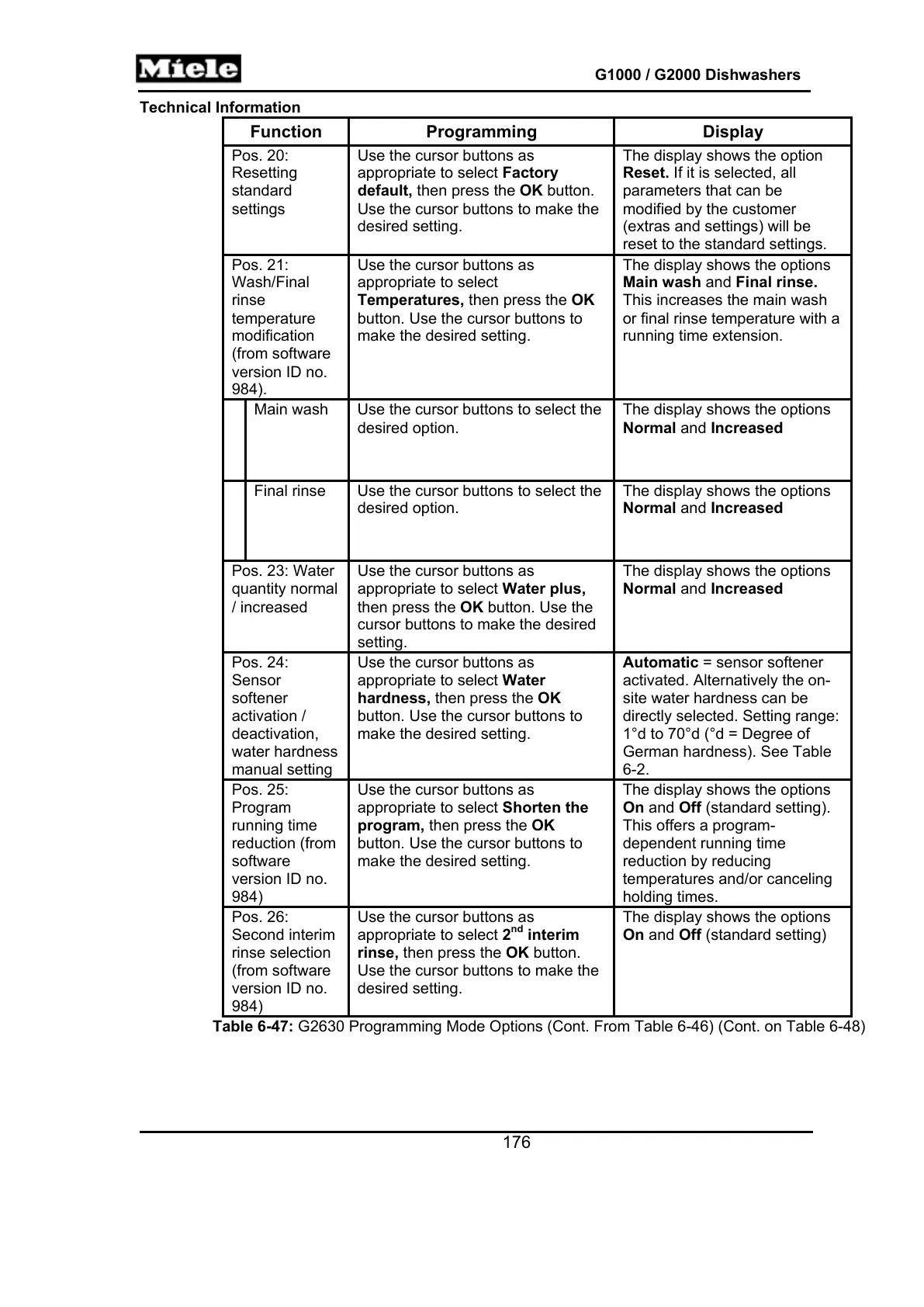 Table 6-47: G2630 Programming Mode Options (Cont. From Table 6-46) (Cont. on Table 6-48)