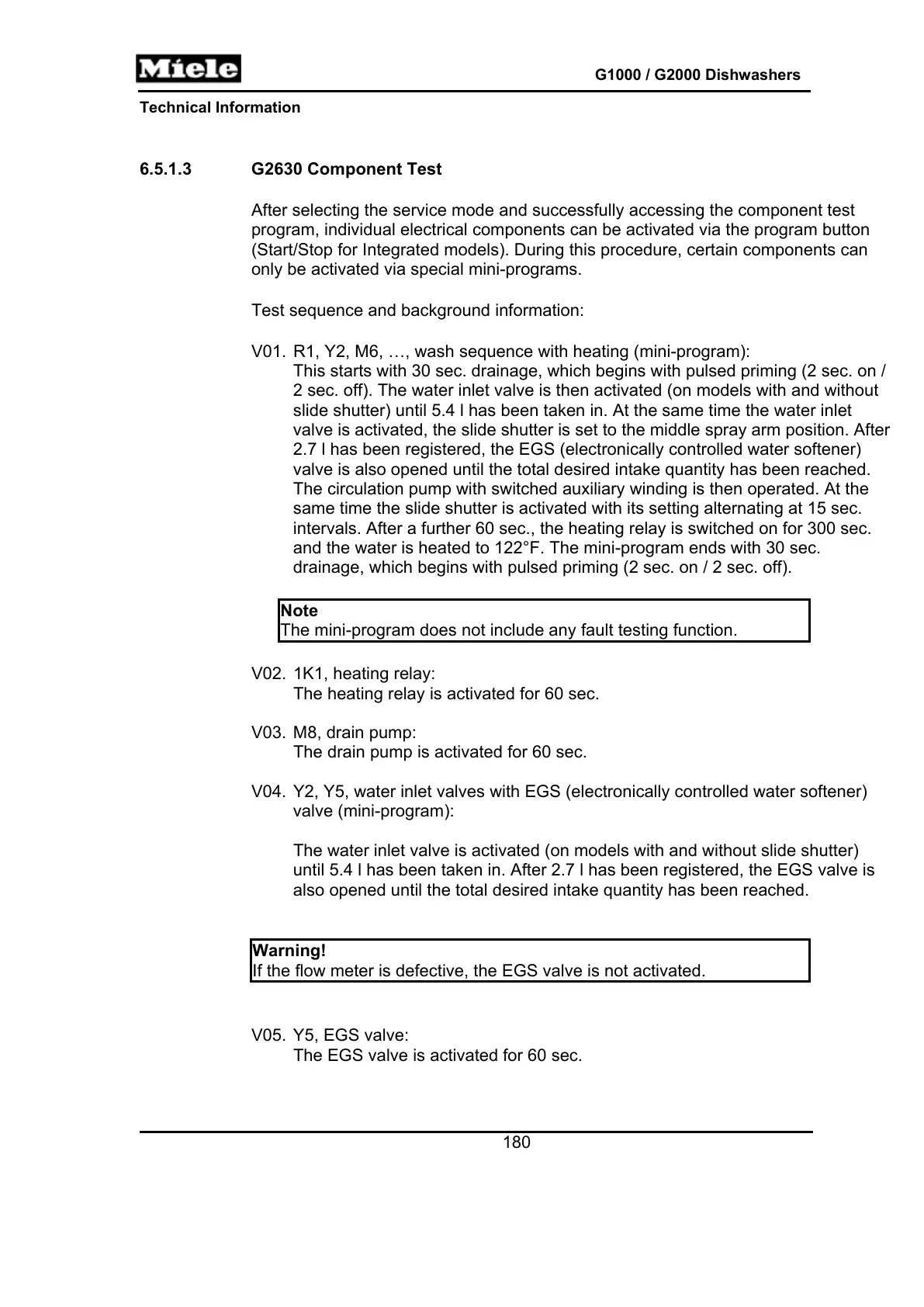 2 sec. off). The water inlet valve is then activated (on models with and without