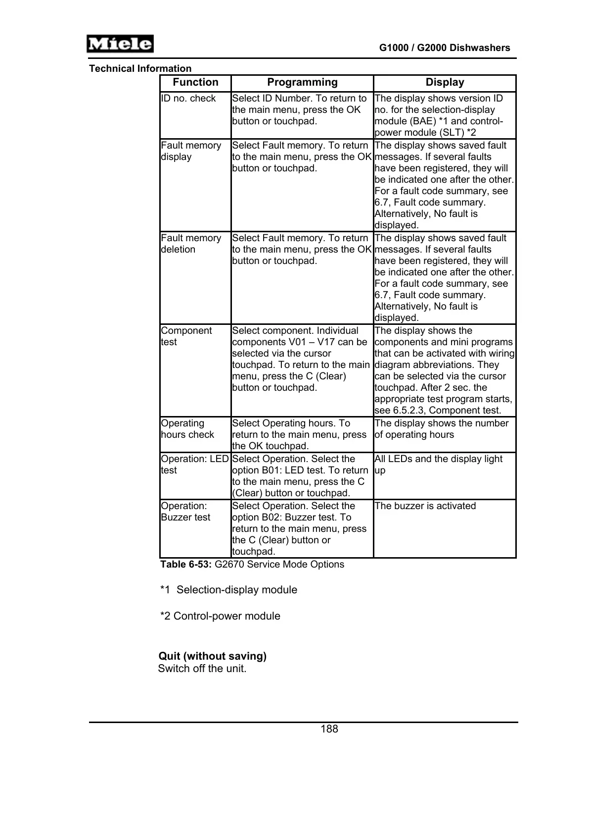 Table 6-53: G2670 Service Mode Options