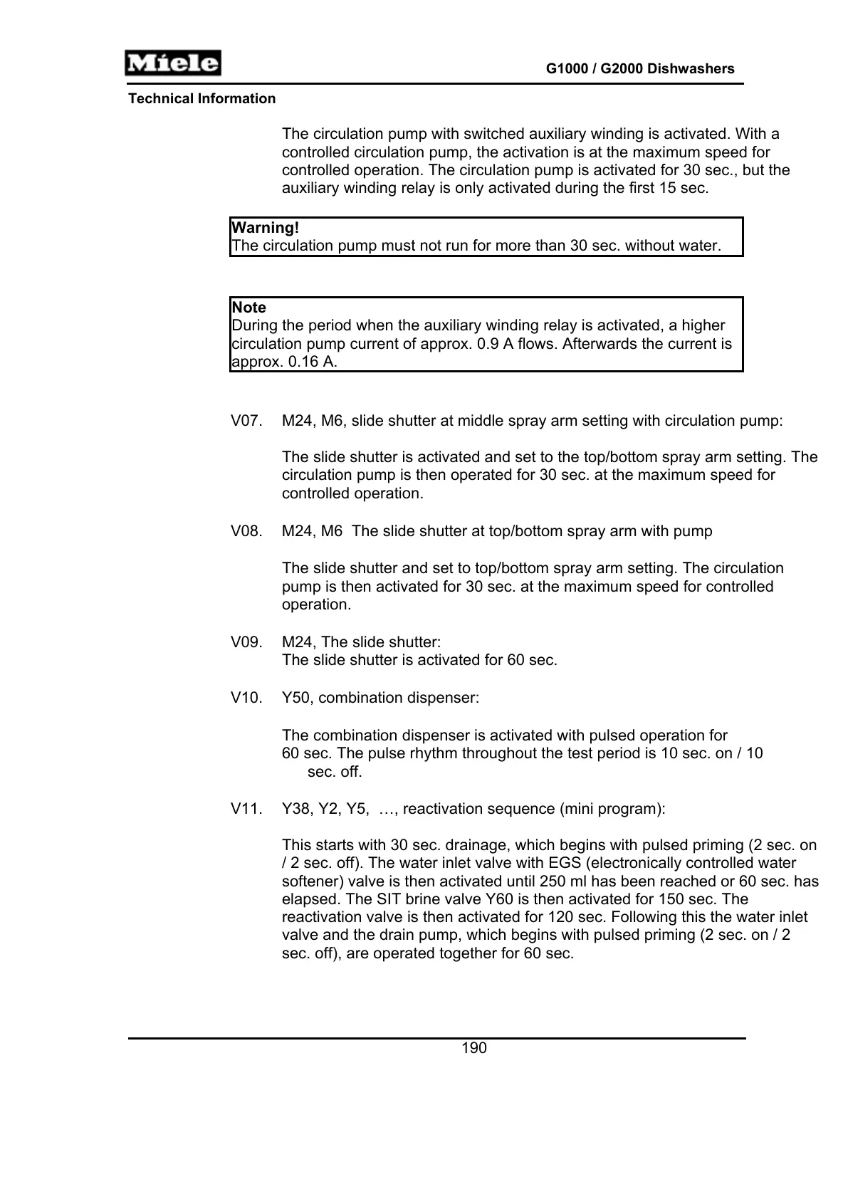 valve and the drain pump, which begins with pulsed priming (2 sec. on / 2