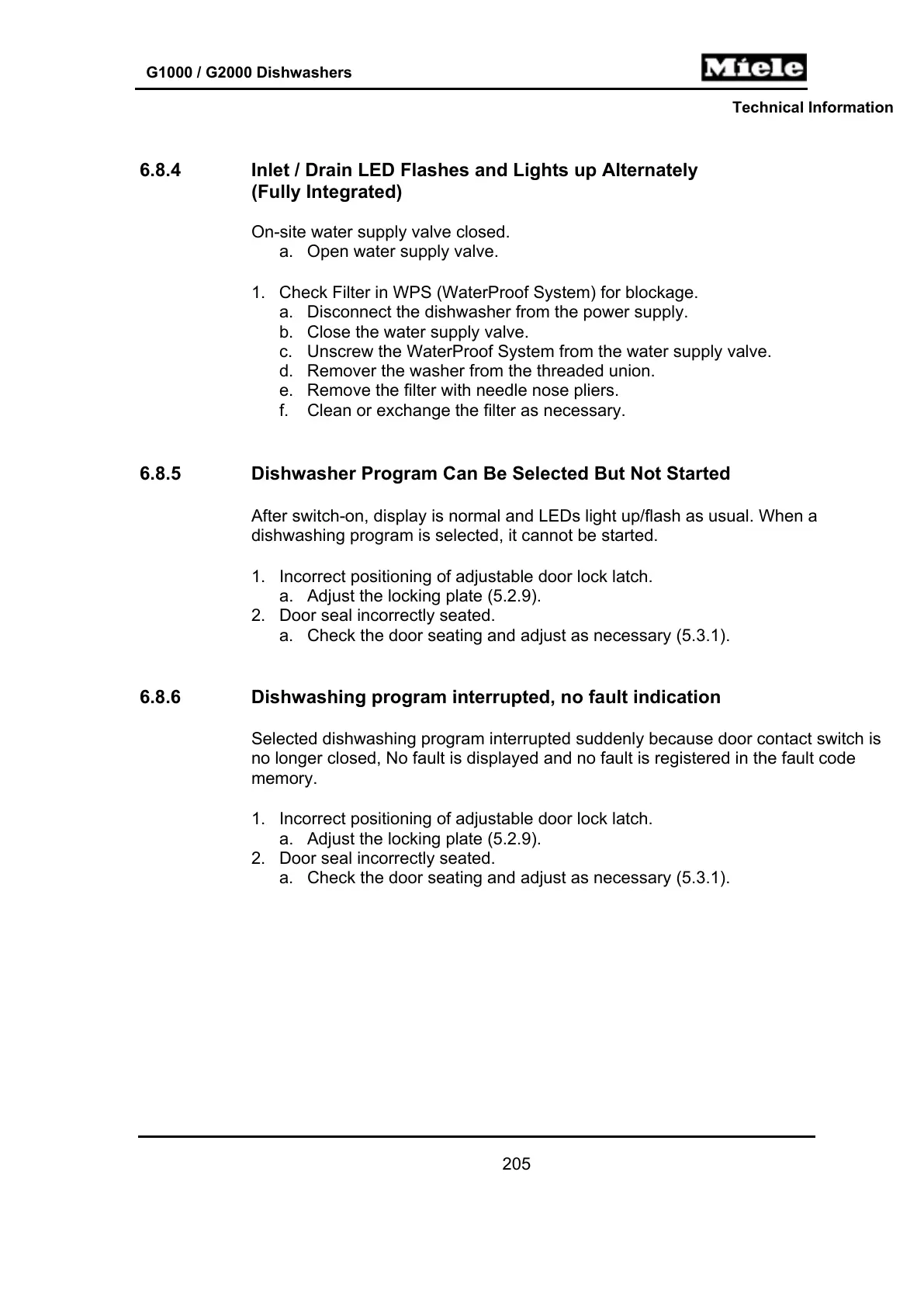 6.8.5 Dishwasher Program Can Be Selected But Not Started
