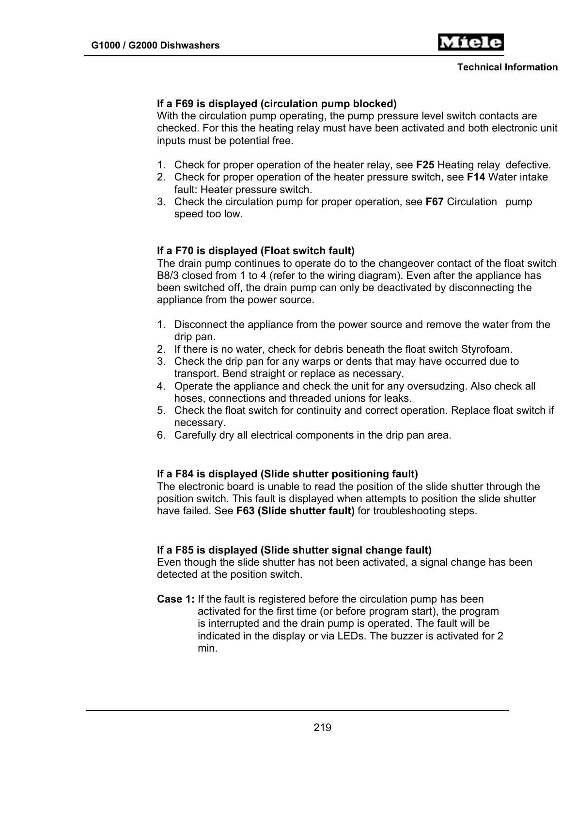 If a F70 is displayed (Float switch fault)