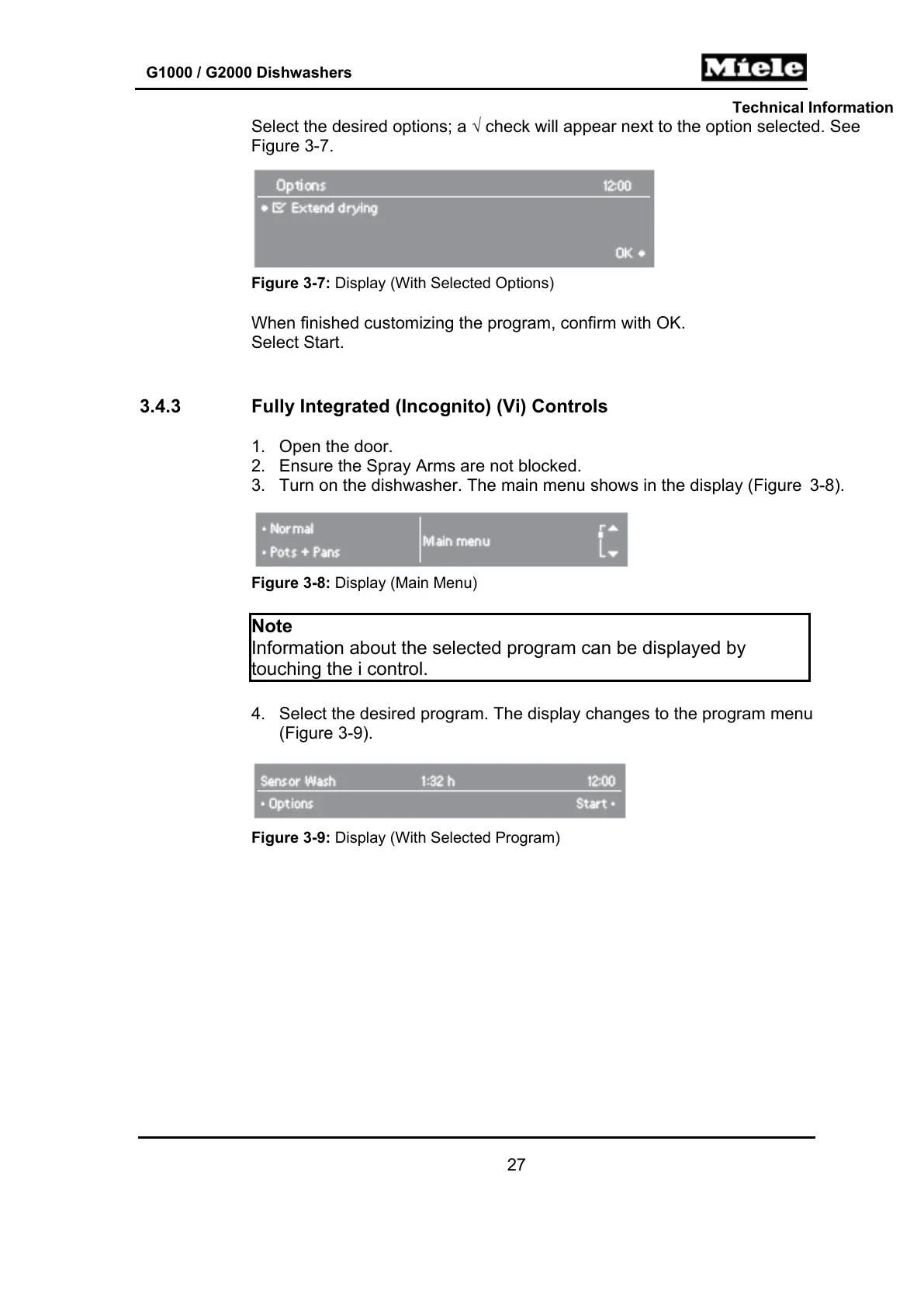 3. Turn on the dishwasher. The main menu shows in the display (Figure 3-8).