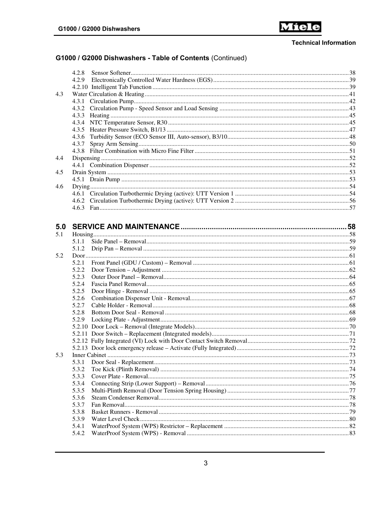 G1000 / G2000 Dishwashers - Table of Contents (Continued)
