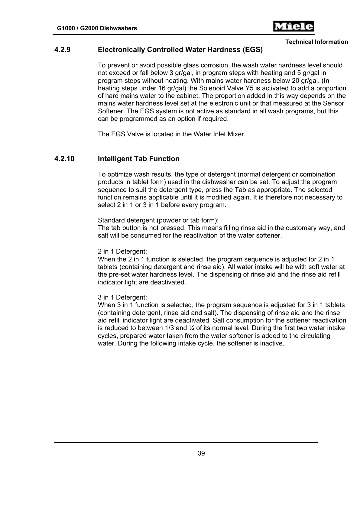 4.2.9 Electronically Controlled Water Hardness (EGS)