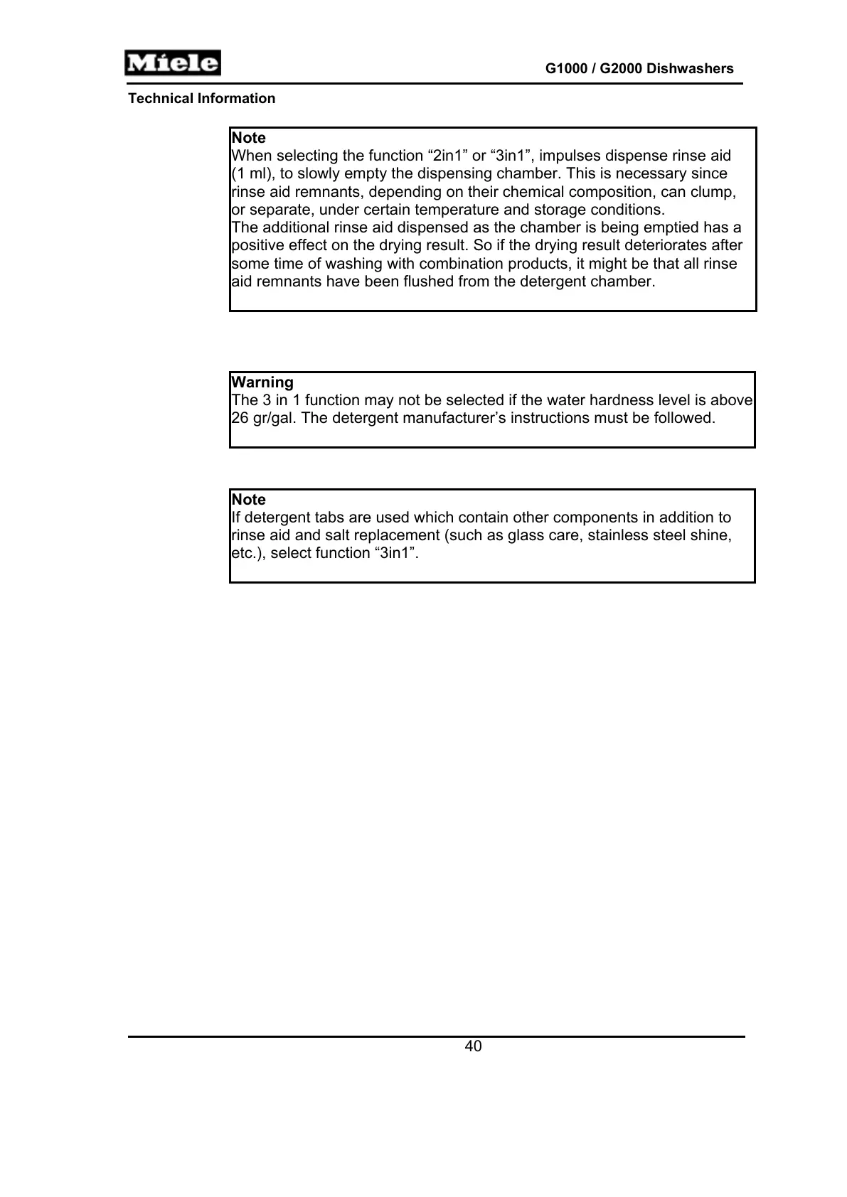 When selecting the function “2in1” or “3in1”, impulses dispense rinse aid