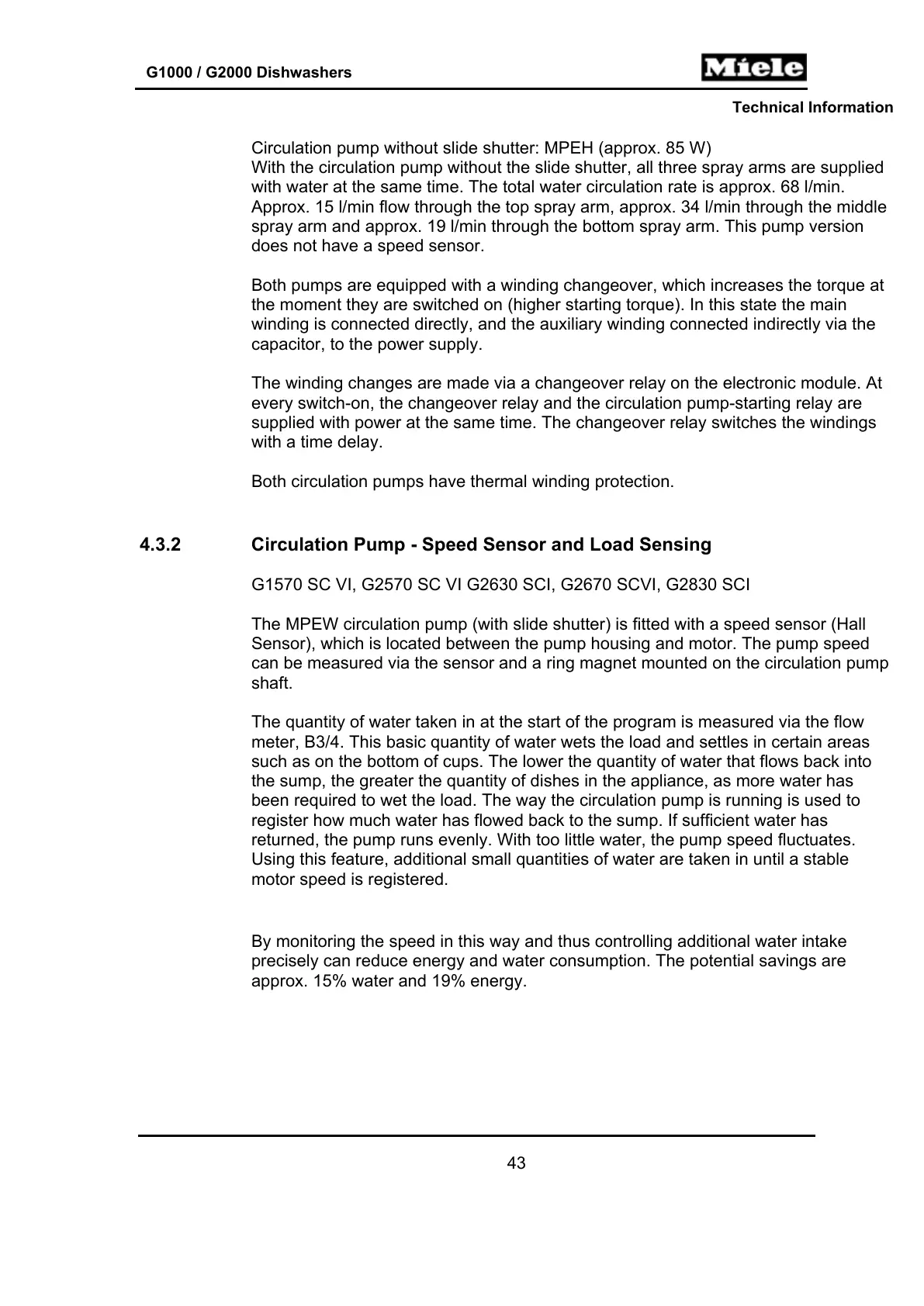 spray arm and approx. 19 l/min through the bottom spray arm. This pump version