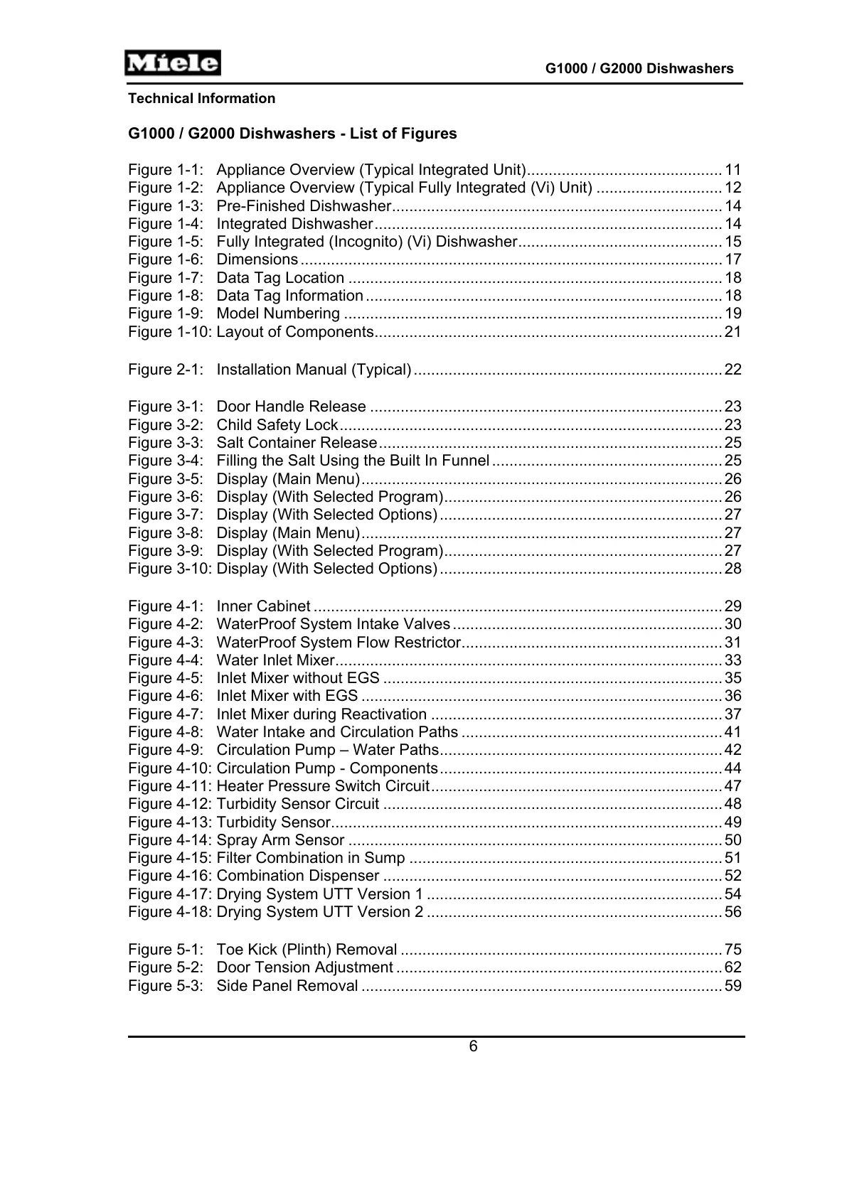 G1000 / G2000 Dishwashers - List of Figures