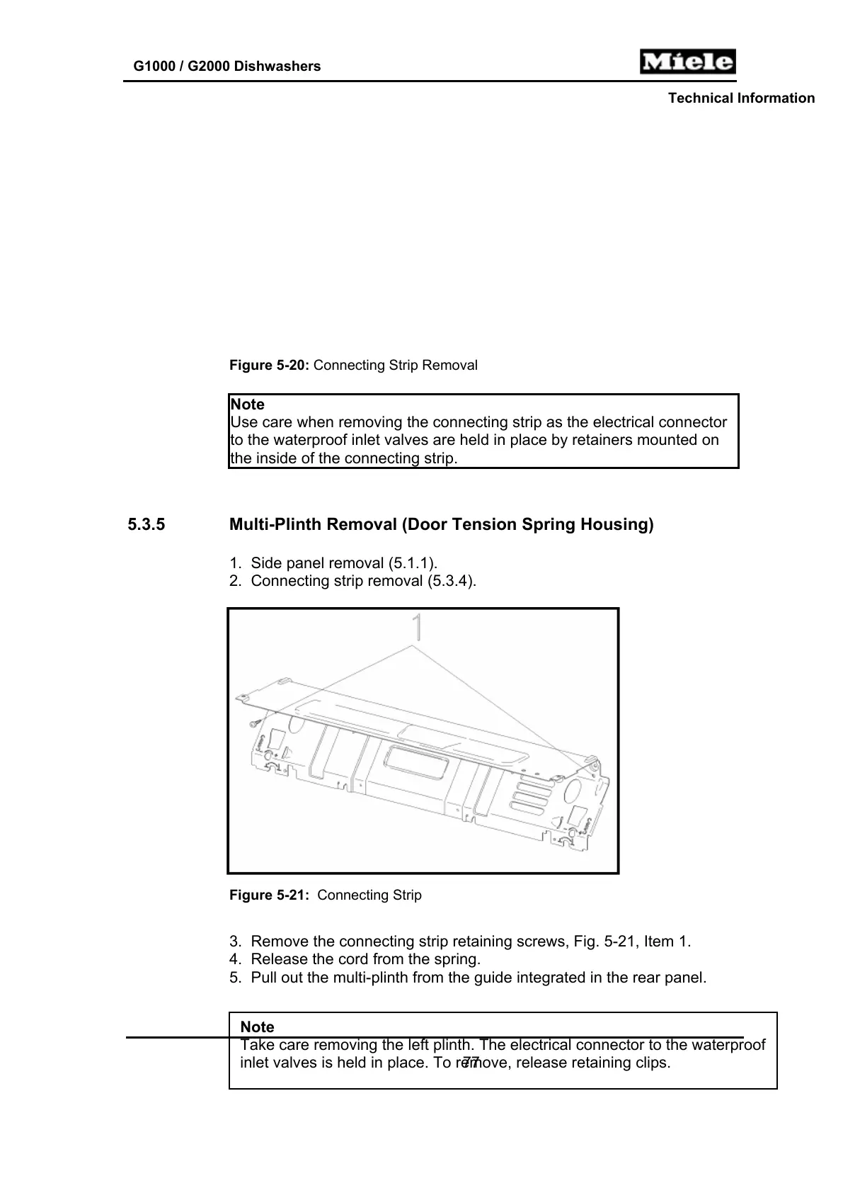 3. Remove the connecting strip retaining screws, Fig. 5-21, Item 1.