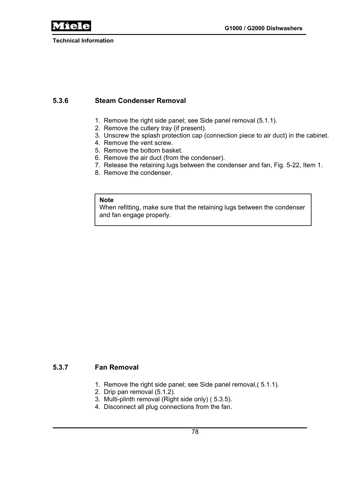 7. Release the retaining lugs between the condenser and fan, Fig. 5-22, Item 1.