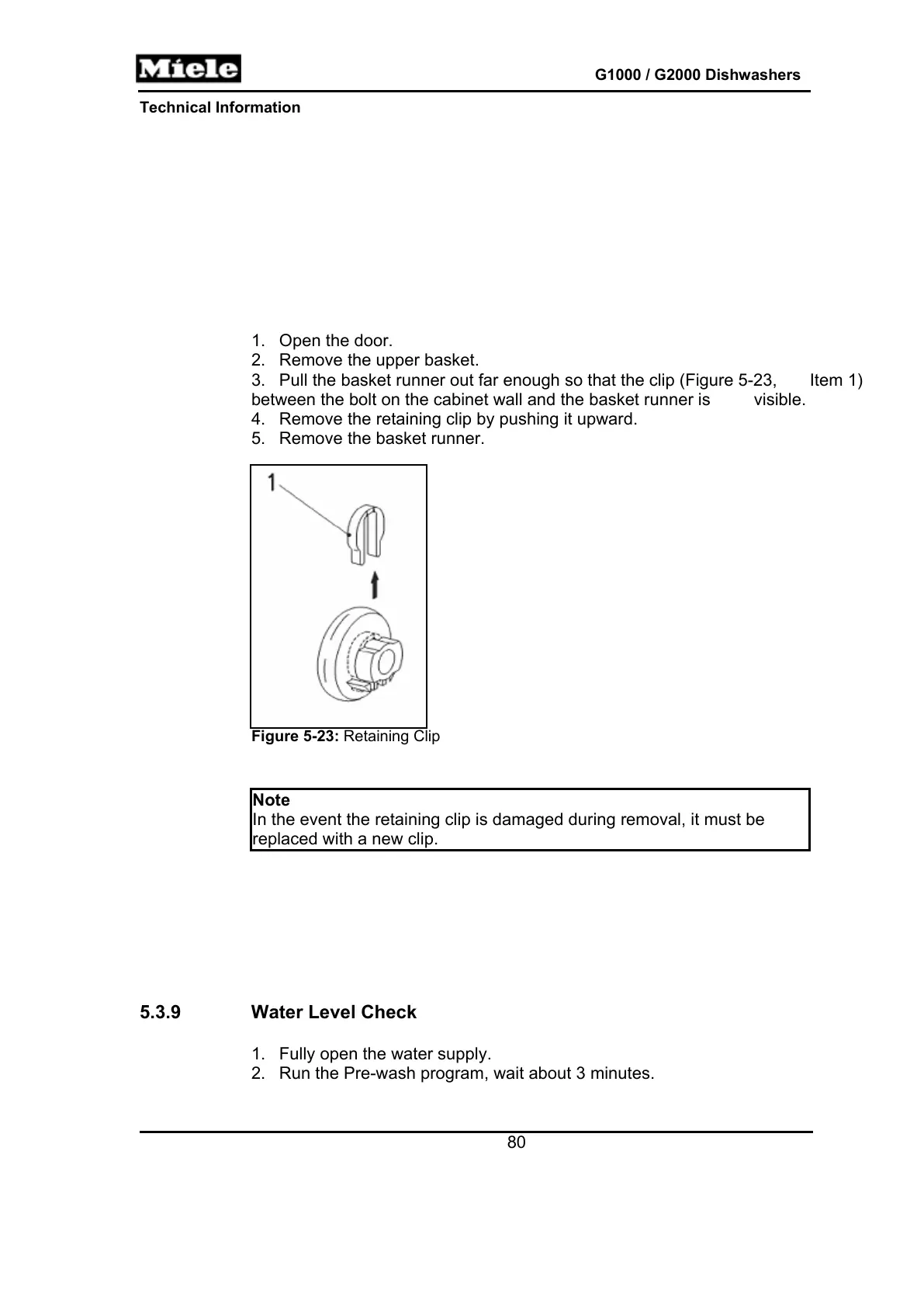 3. Pull the basket runner out far enough so that the clip (Figure 5-23, Item 1)