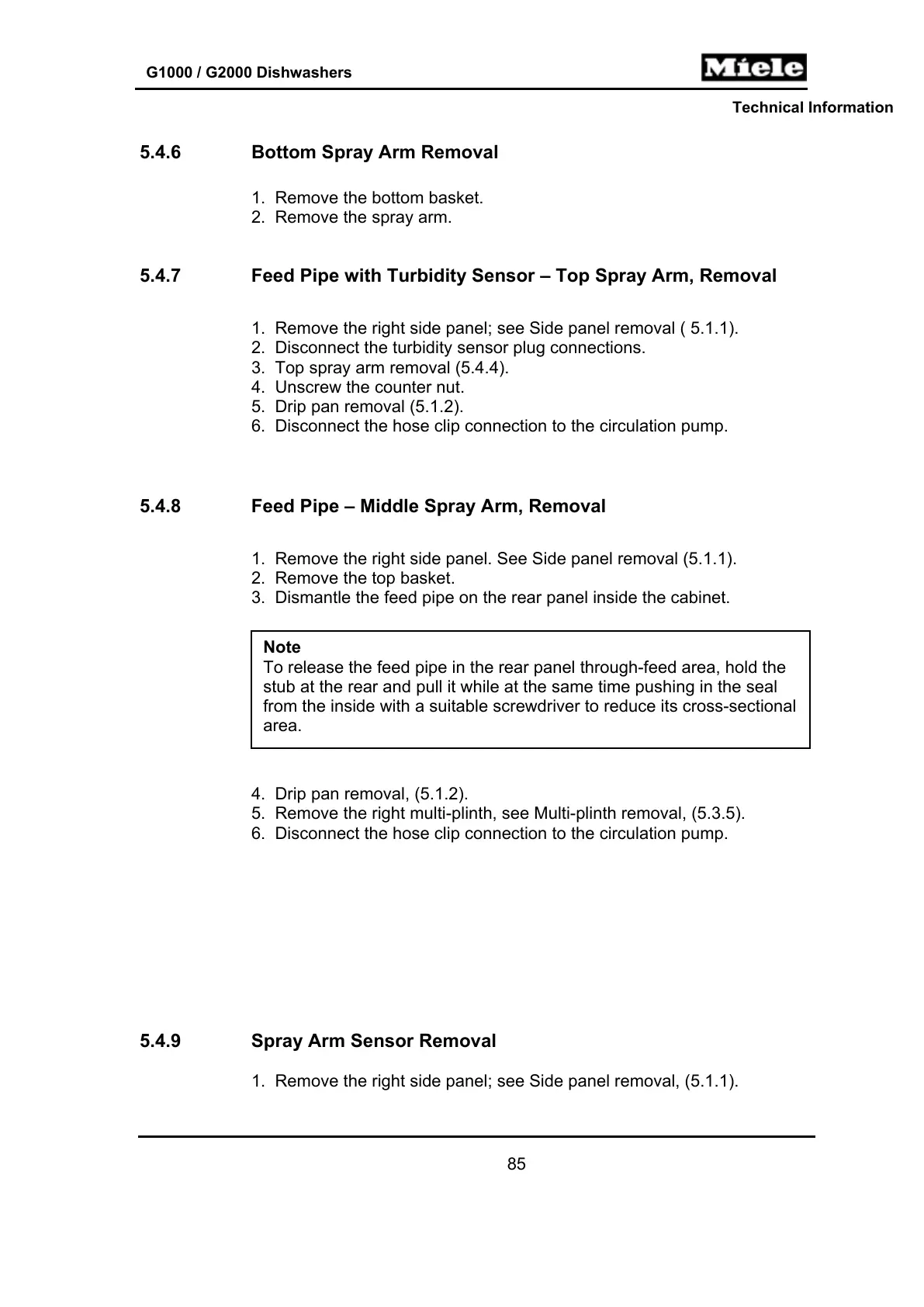 5.4.8 Feed Pipe – Middle Spray Arm, Removal