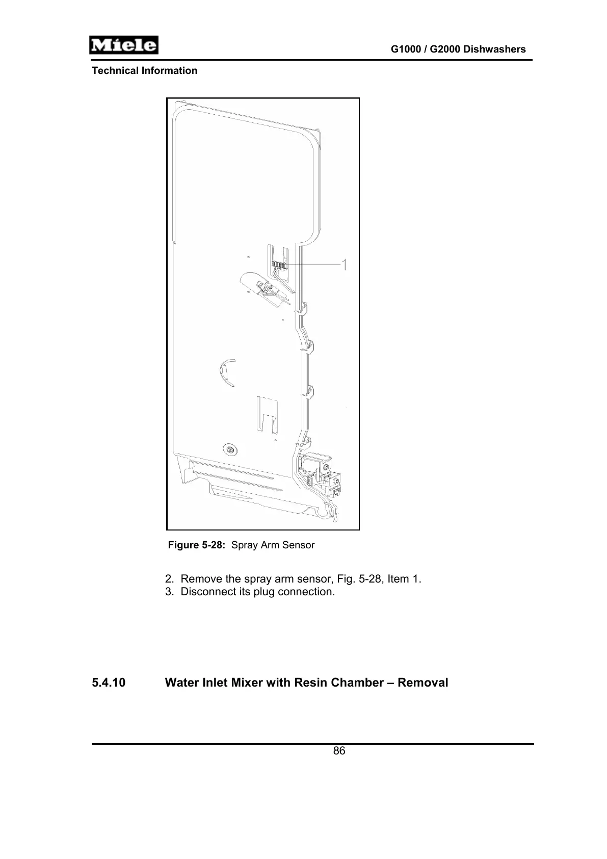 the spray arm sensor, Fig. 5-28, Ite
