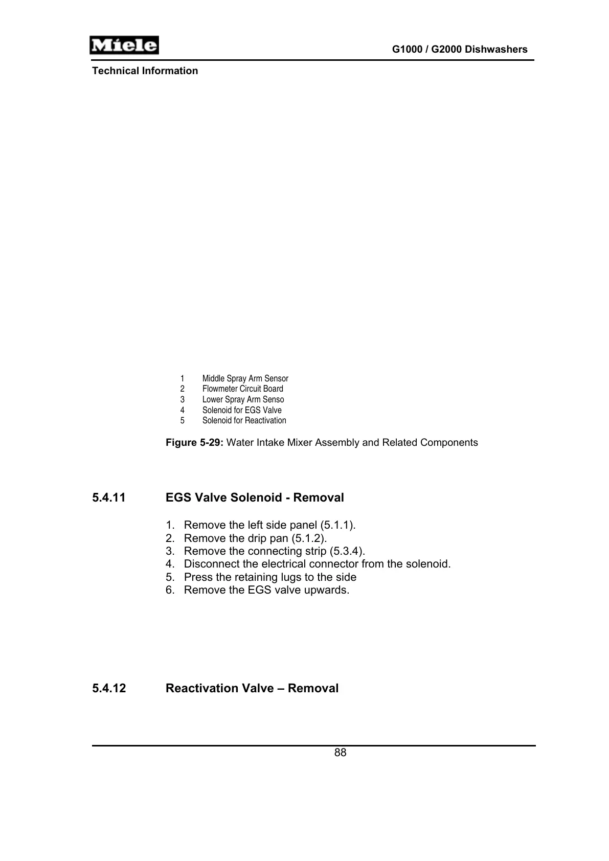 Figure 5-29: Water Intake Mixer Assembly and Related Components