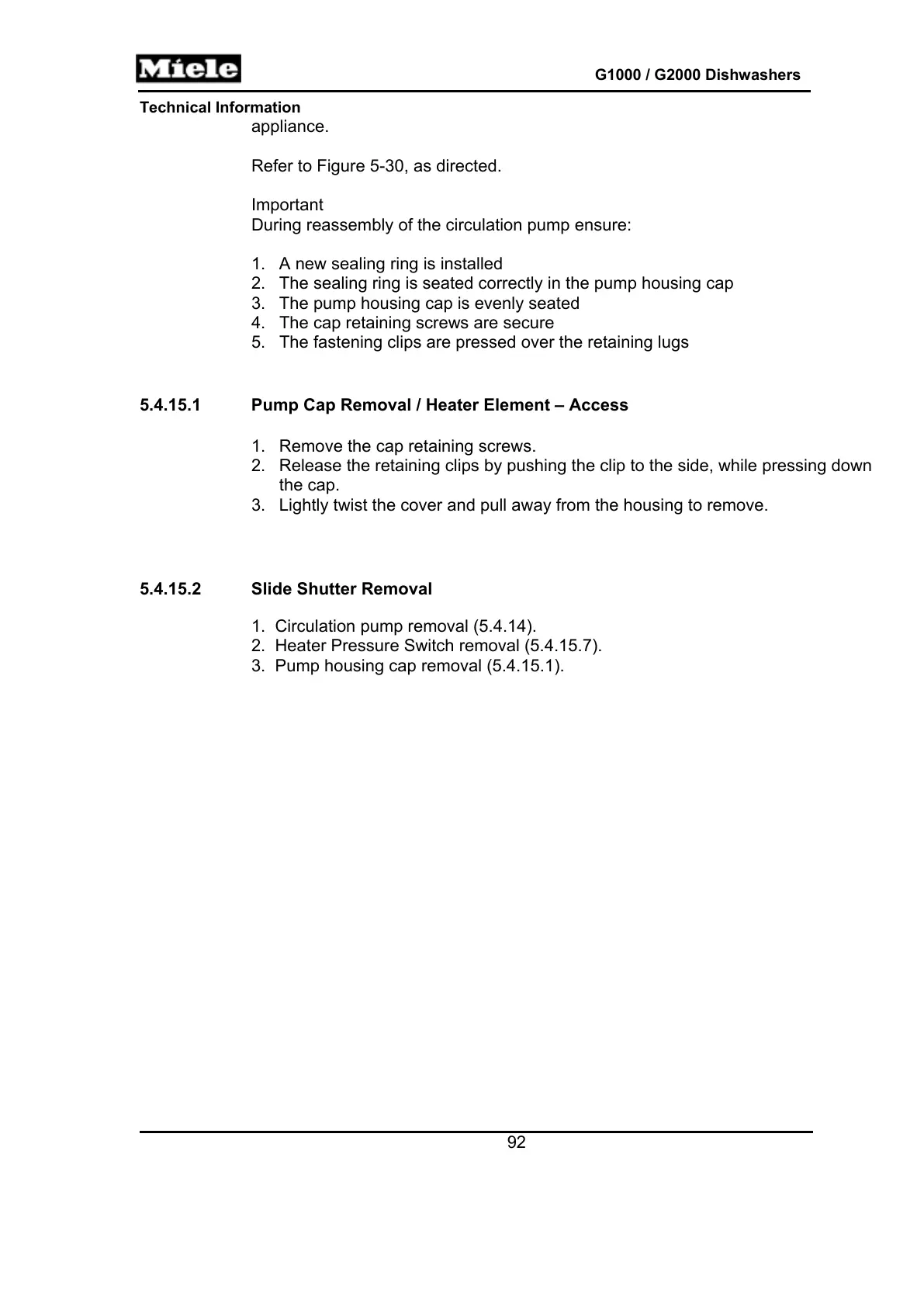 5.4.15.1 Pump Cap Removal / Heater Element – Access