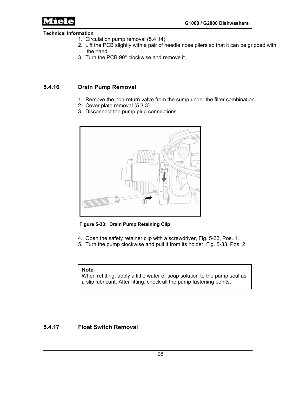 5. Turn the pump clockwise and pull it from its holder, Fig. 5-33, Pos. 2.