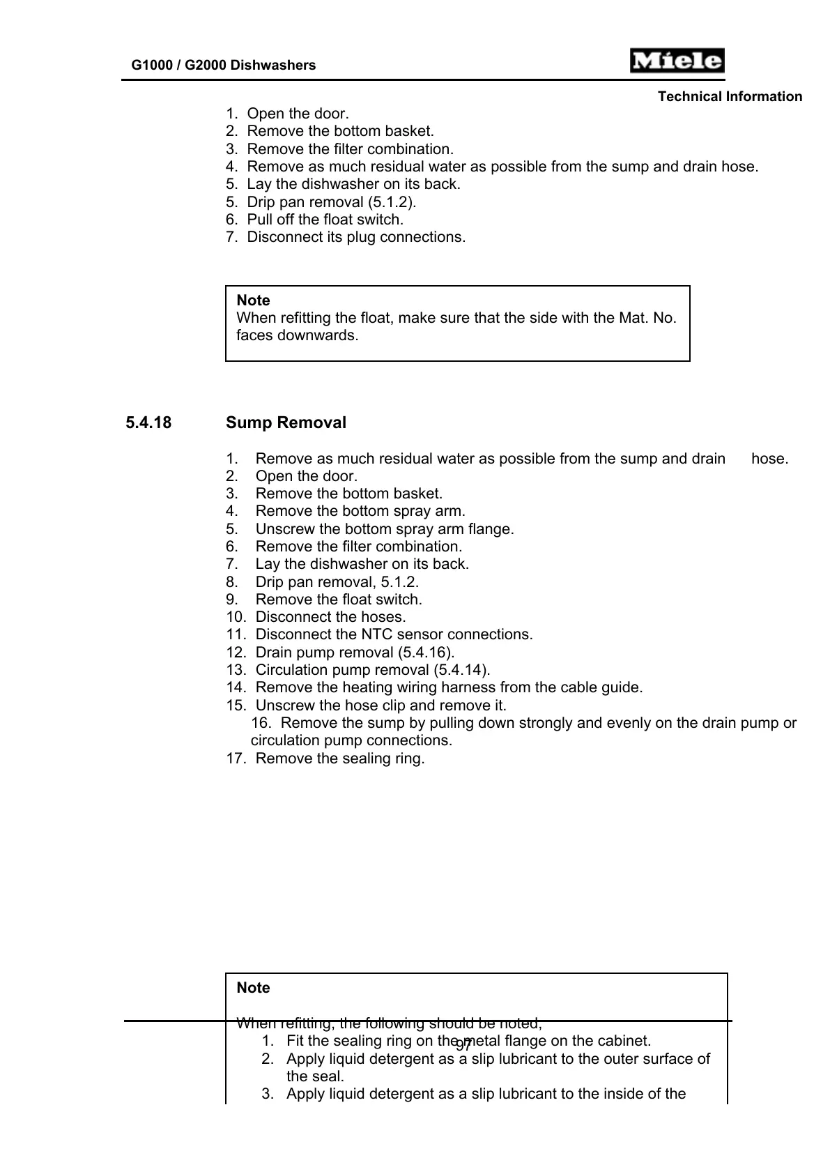 16. Remove the sump by pulling down strongly and evenly on the drain pump or
