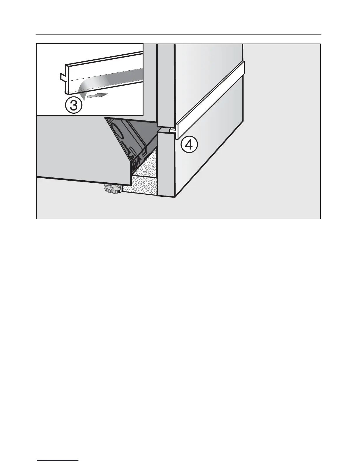 ĺ Push the insulating strip into the front top edge of the toe-kick ȩ.