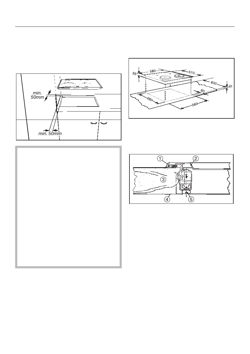 – 50 mm between the worktop