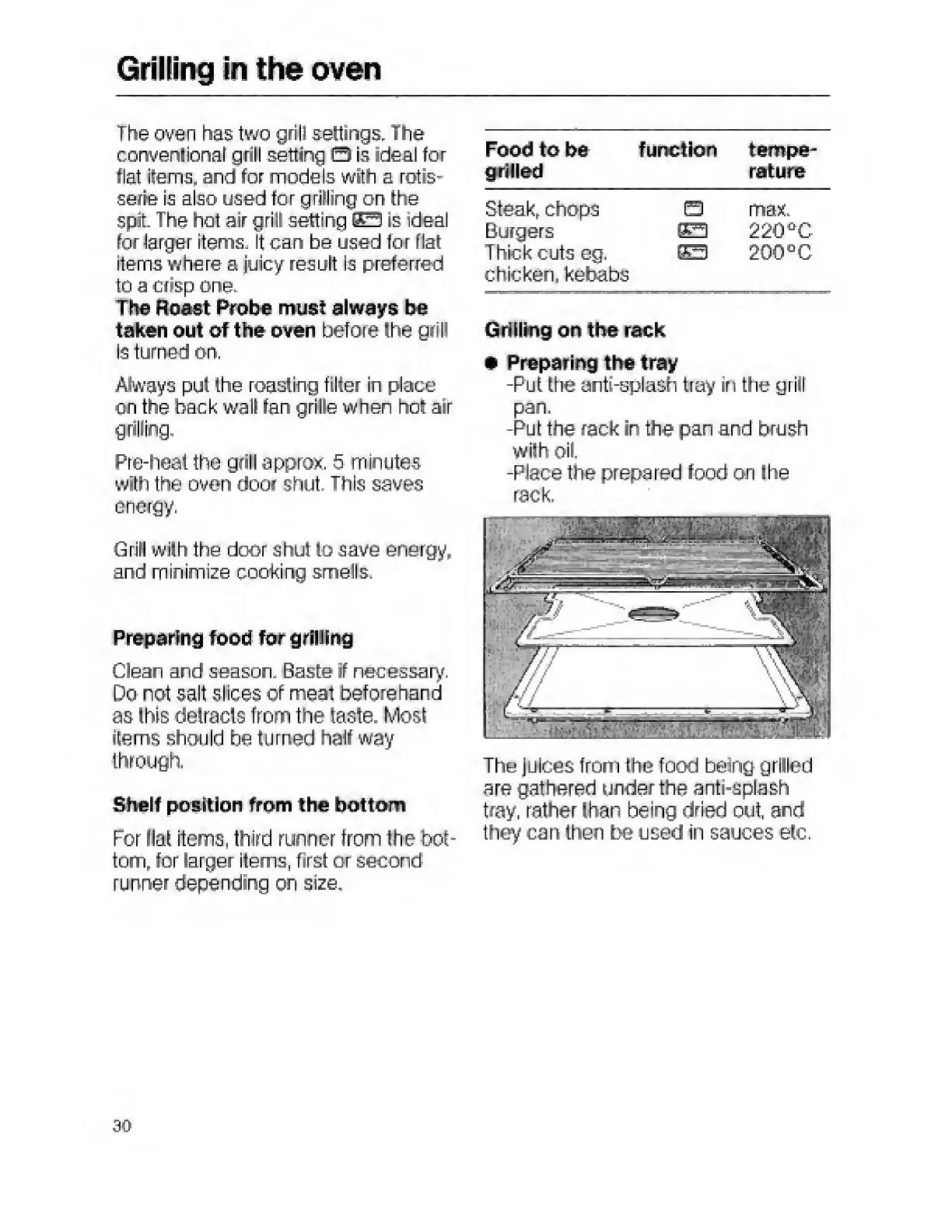 Miele H 818 - Grilling in the Oven; Grilling Settings and Rack Preparation