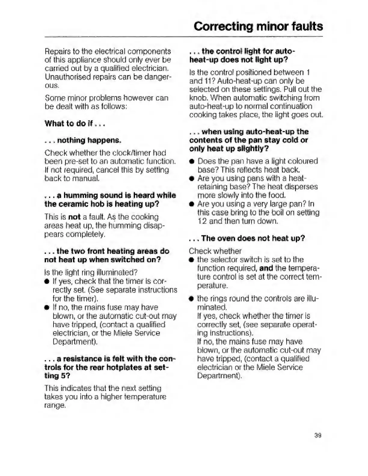 Miele H 818 - Troubleshooting and Service; Correcting Minor Faults