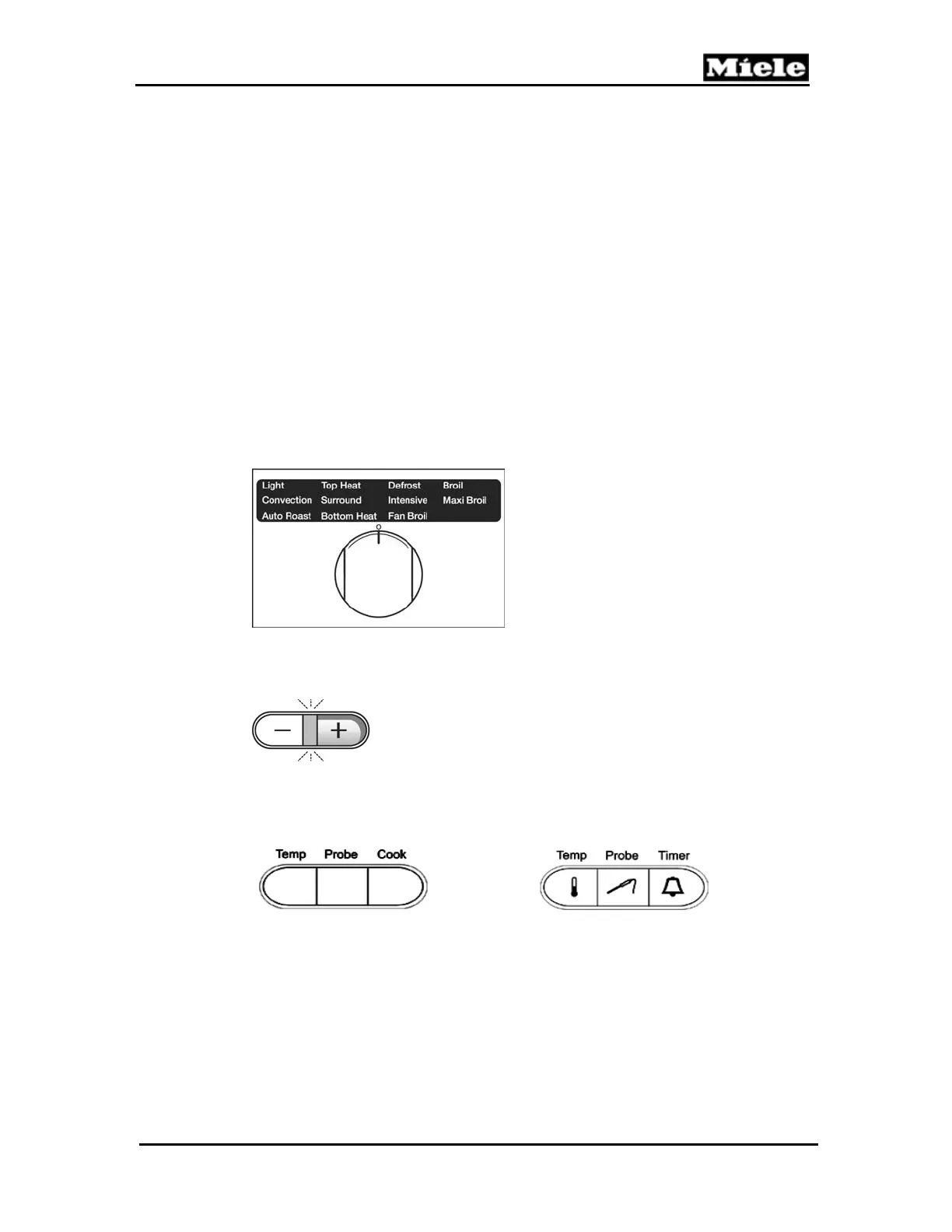 The oven will begin to heat as soon as the indicator light between the “+/-“