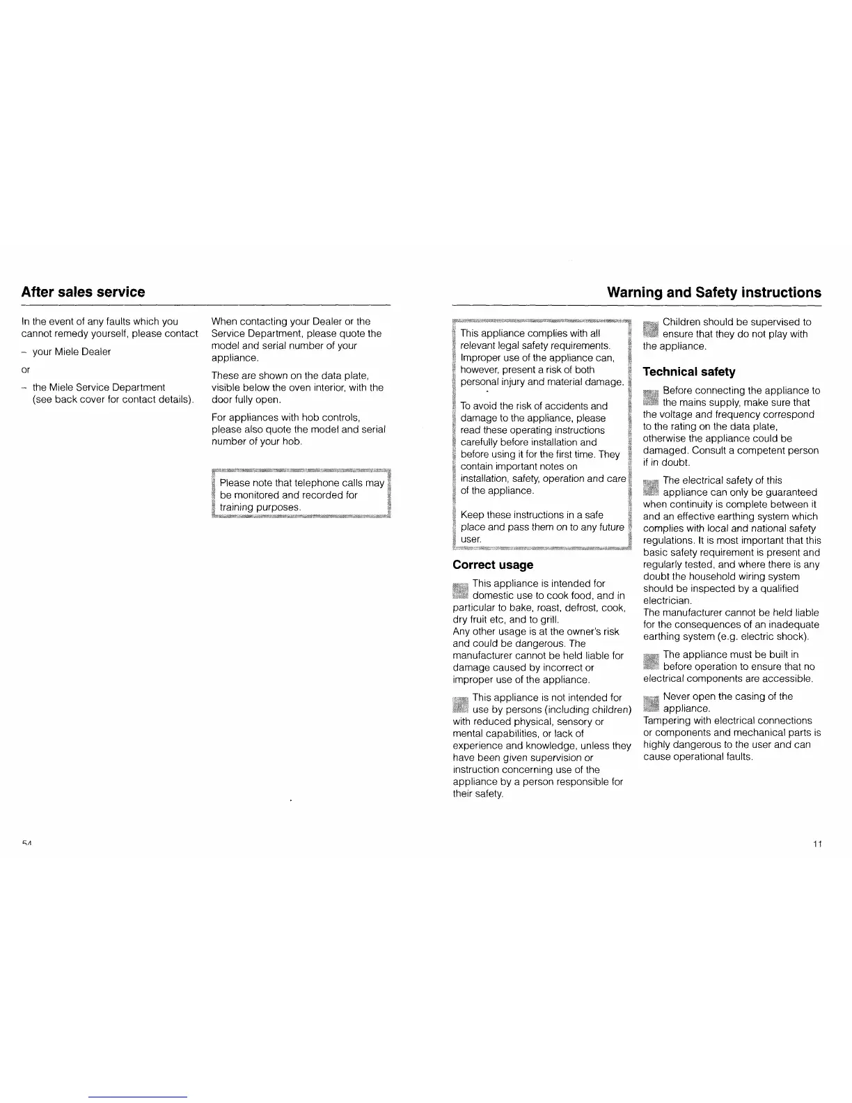 Miele H4200 - Warning and Safety instructions; Technical Safety; Important UK Specifics