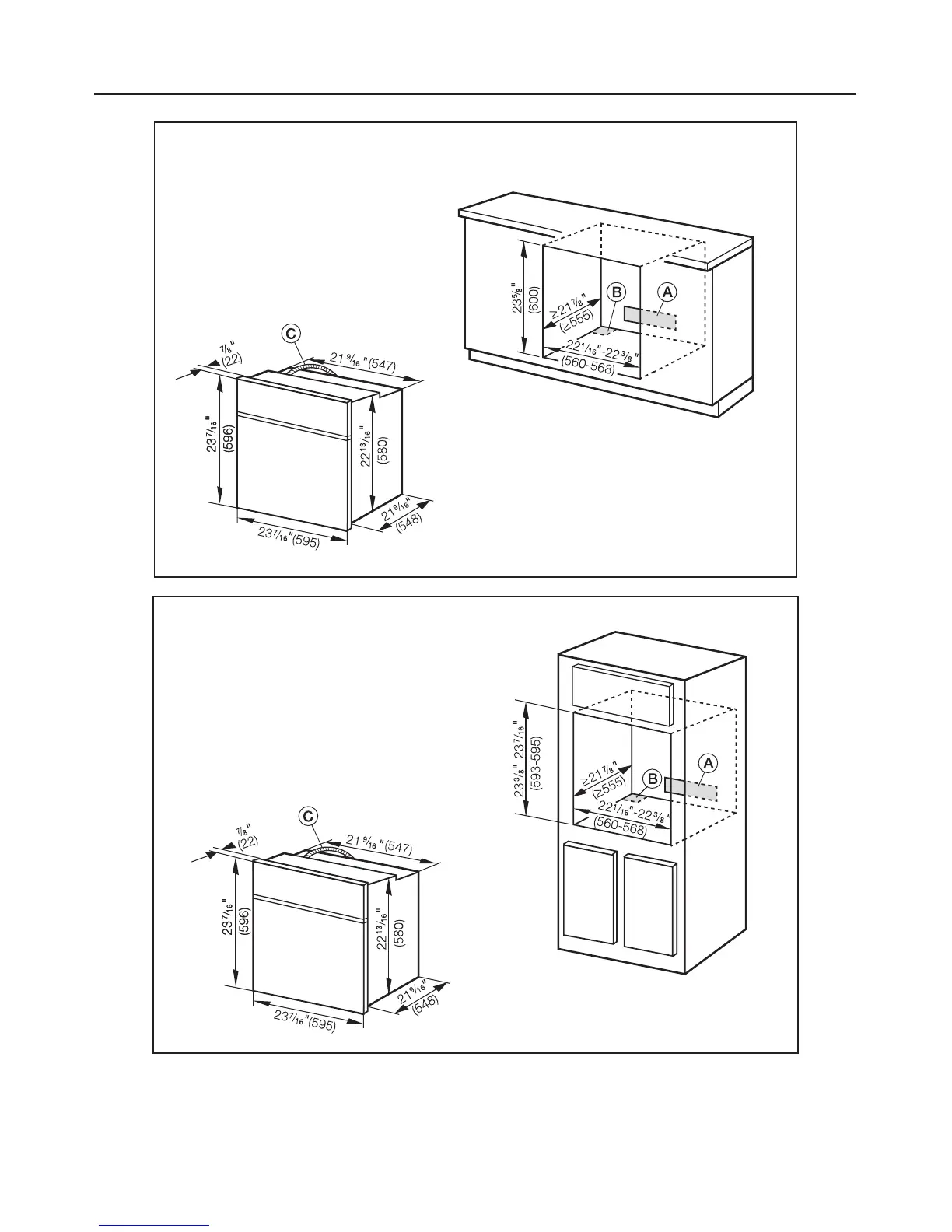 Miele H4680B - Installation Dimensions; Appliance and Cabinet Cut-out Sizes