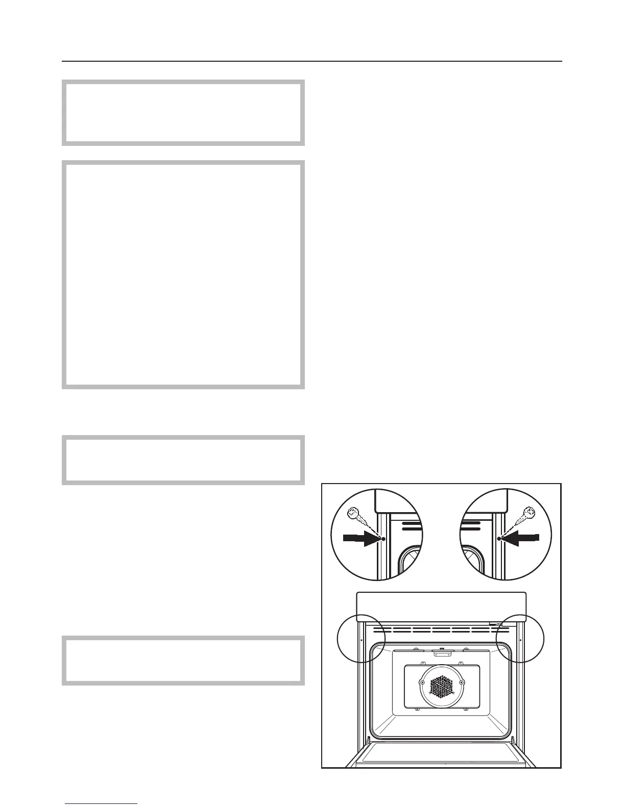 two mounting screw holes in the oven