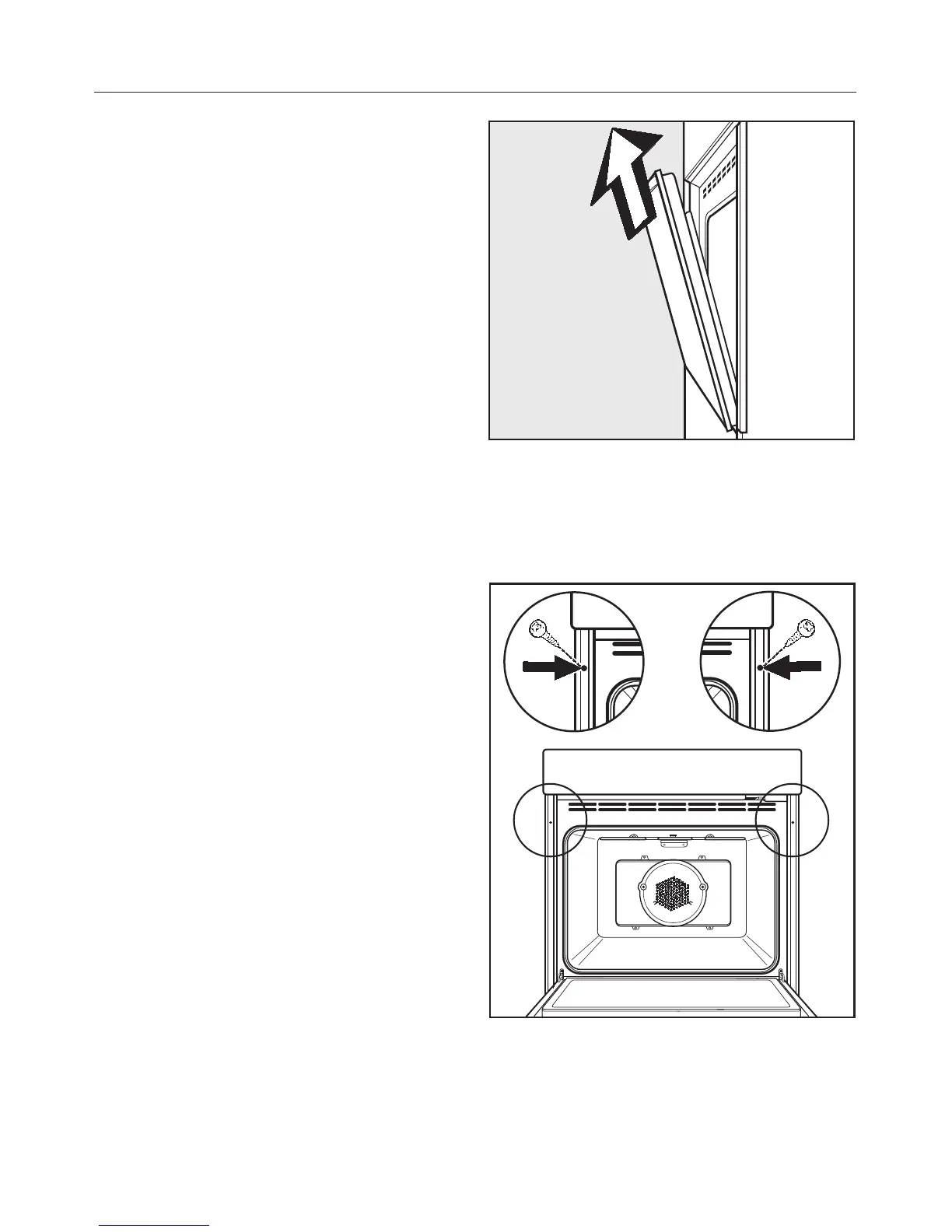 two mounting screw holes in the oven