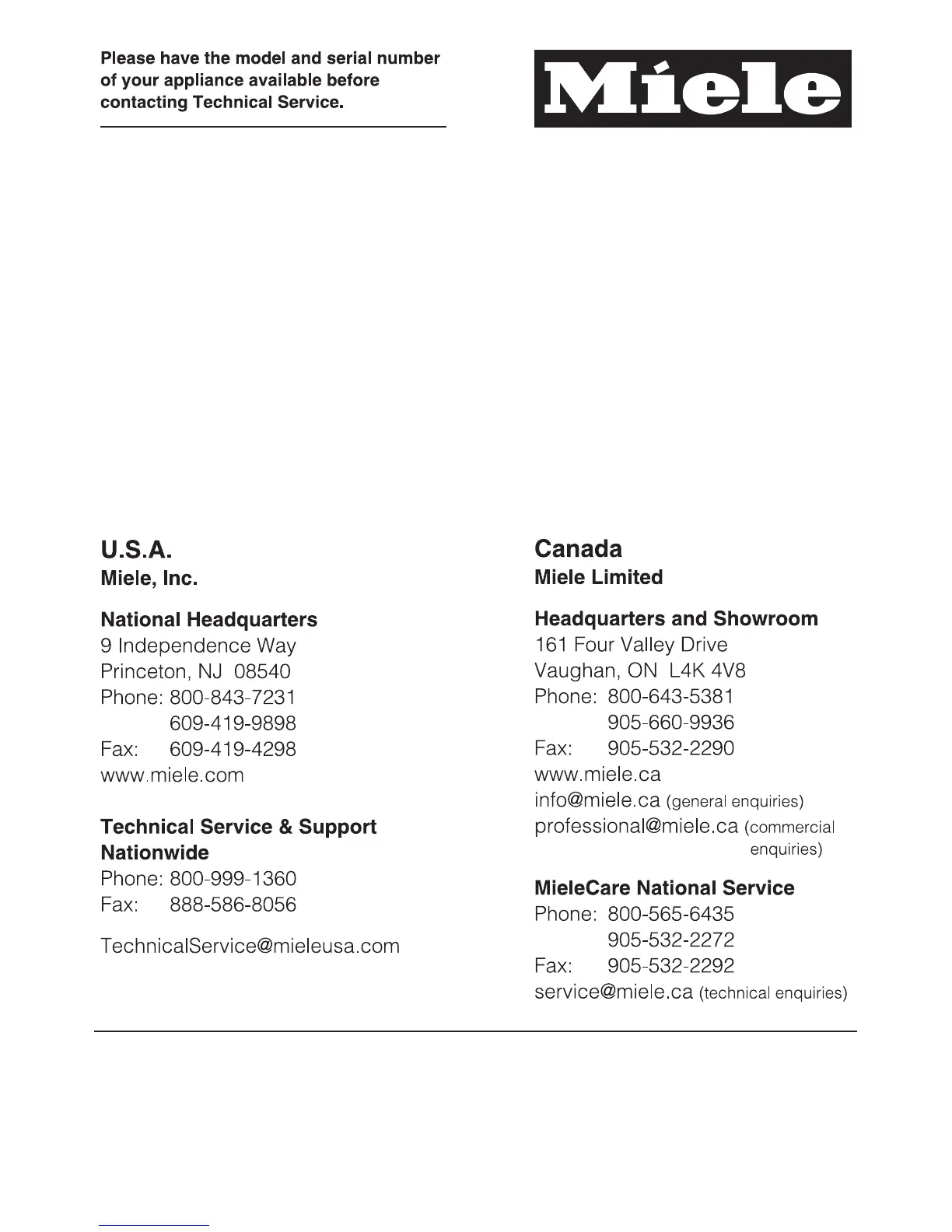 For the most updated manual see the Miele web site.