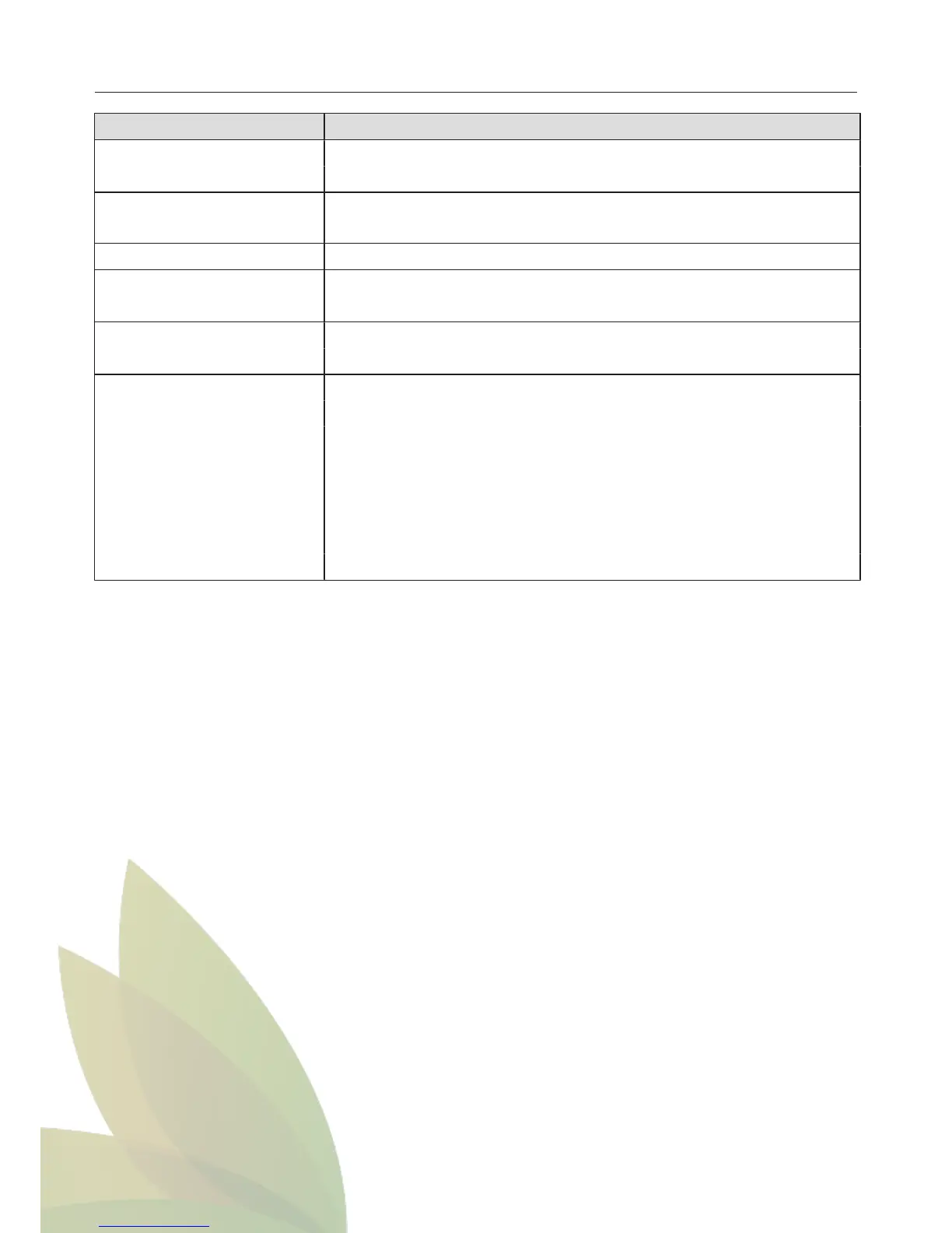 Factory default Settings
