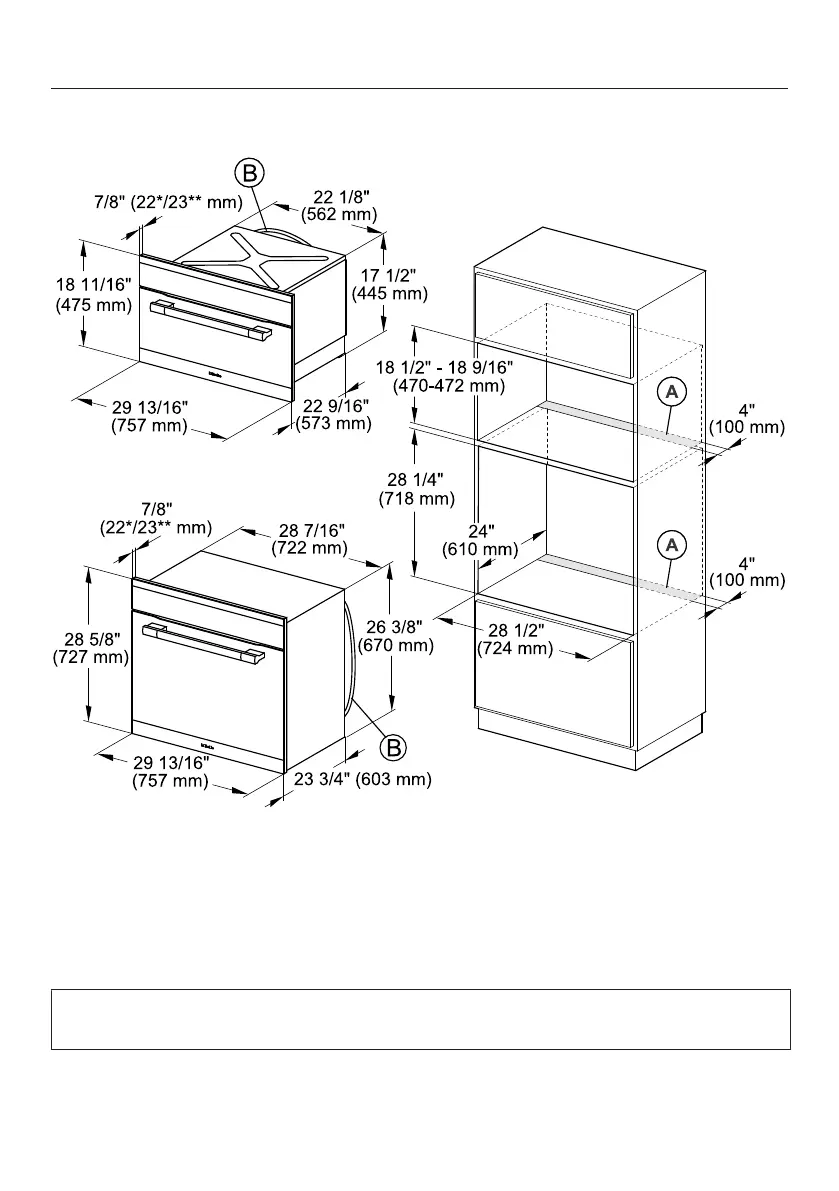 drawing. Current specifications can be found on the Miele website.