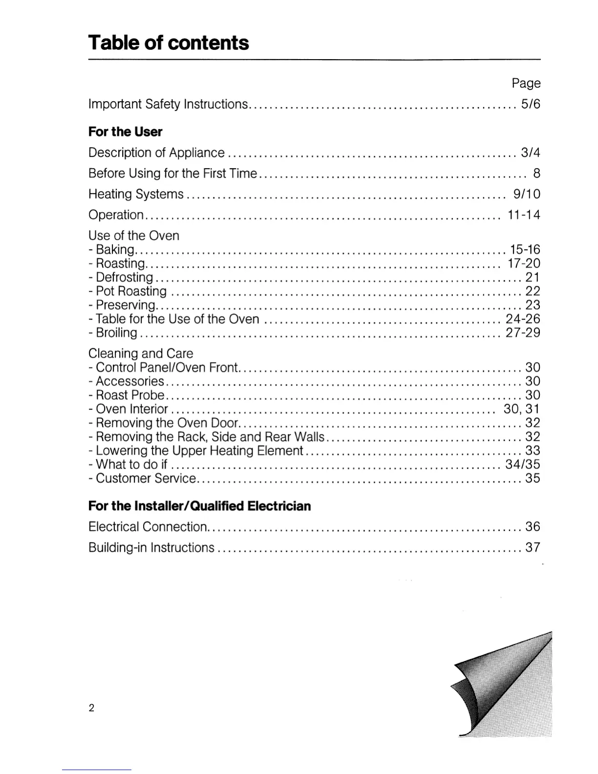 Miele H806B2/C - Table of Contents