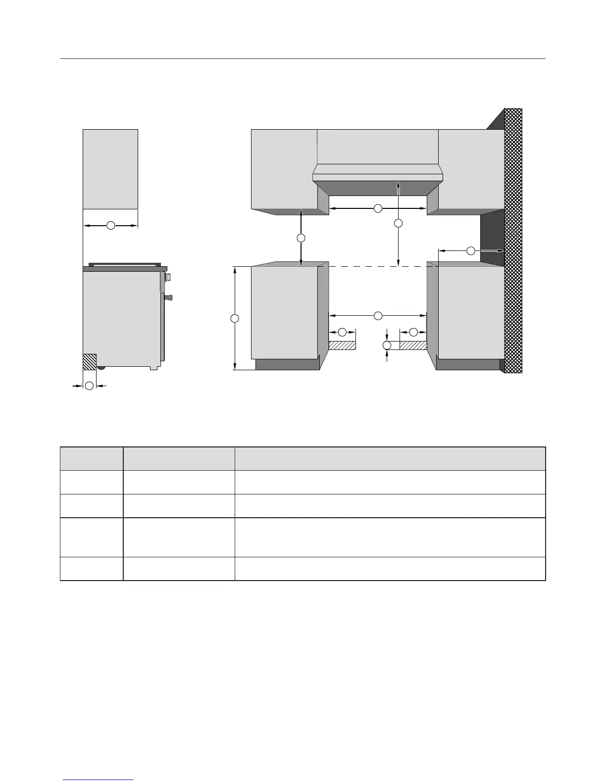 18" (457 mm) Minimum distance to bottom edge of top cabinet