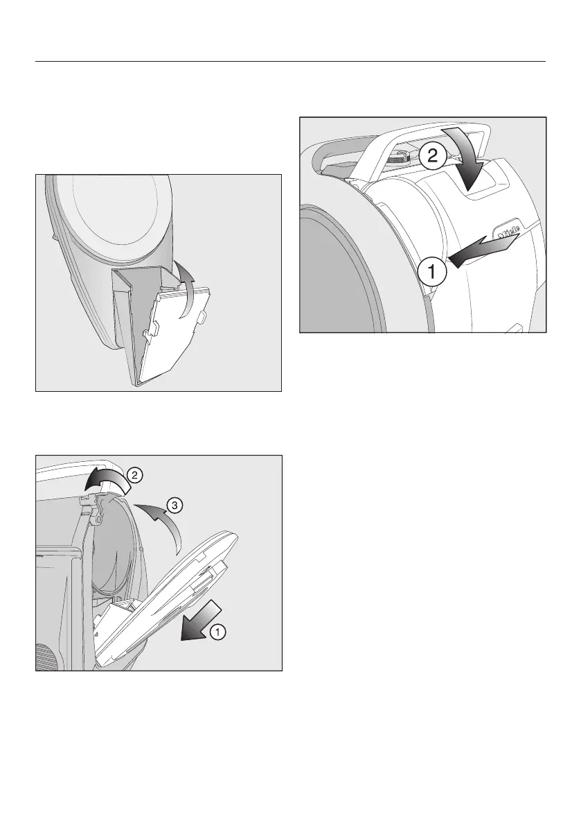 b Lift up the dust container handle and