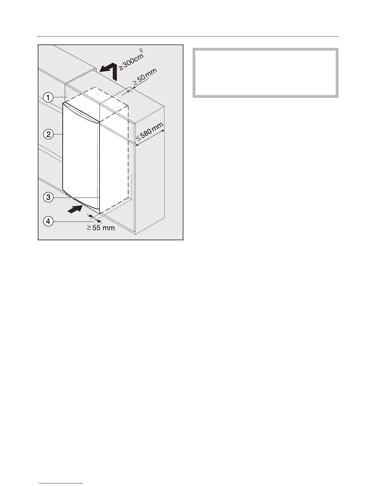 depth 580 mm), the appliance can be