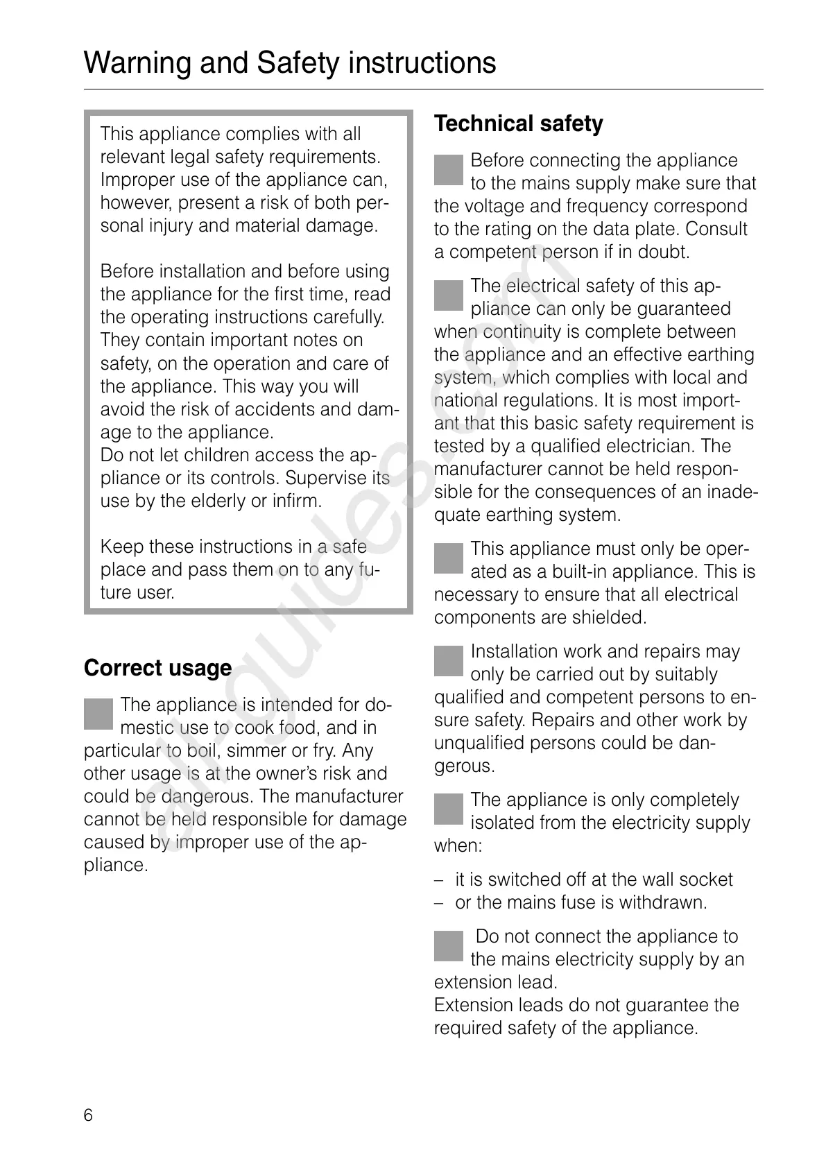 This appliance must only be oper-