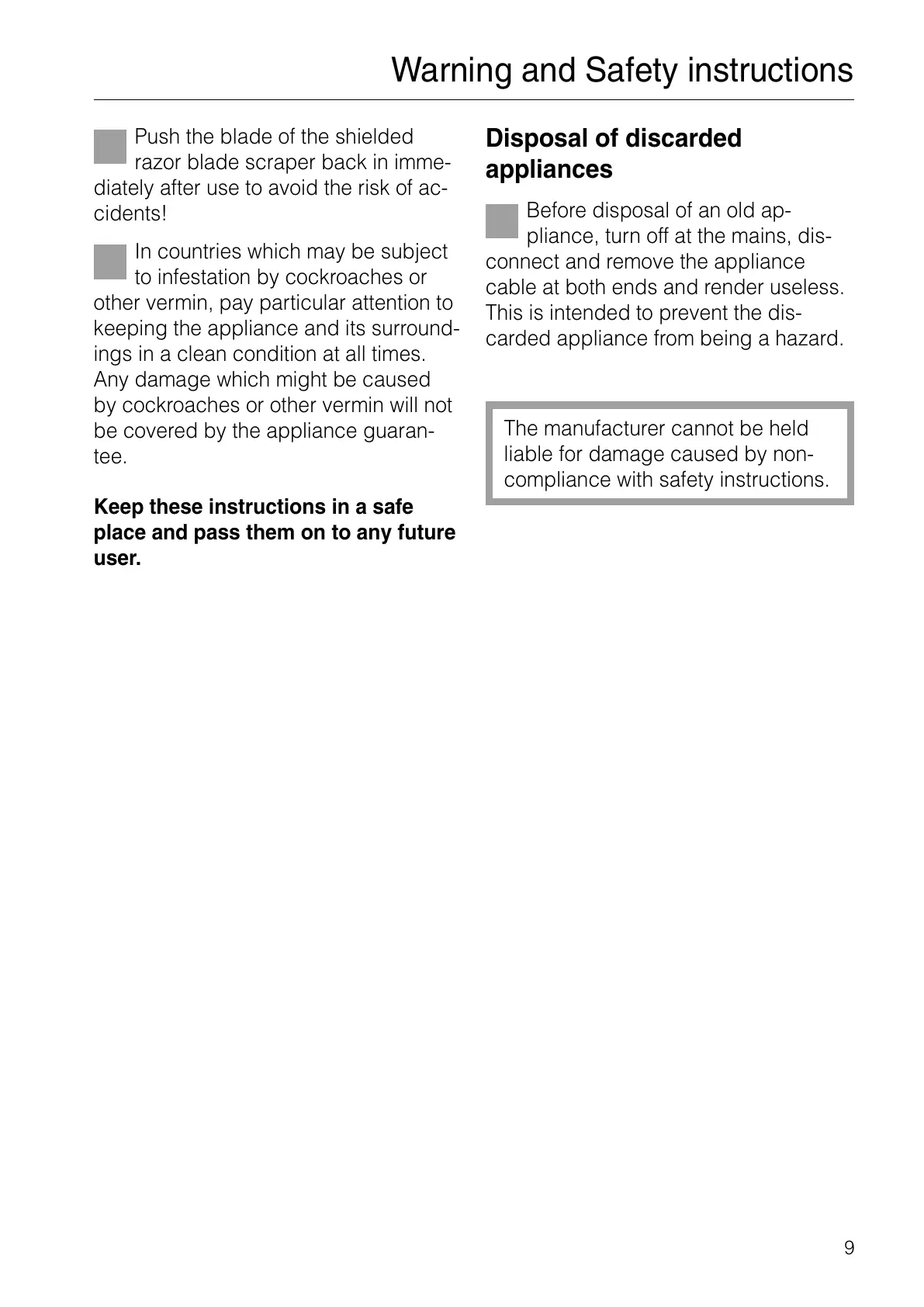 Keep these instructions in a safe