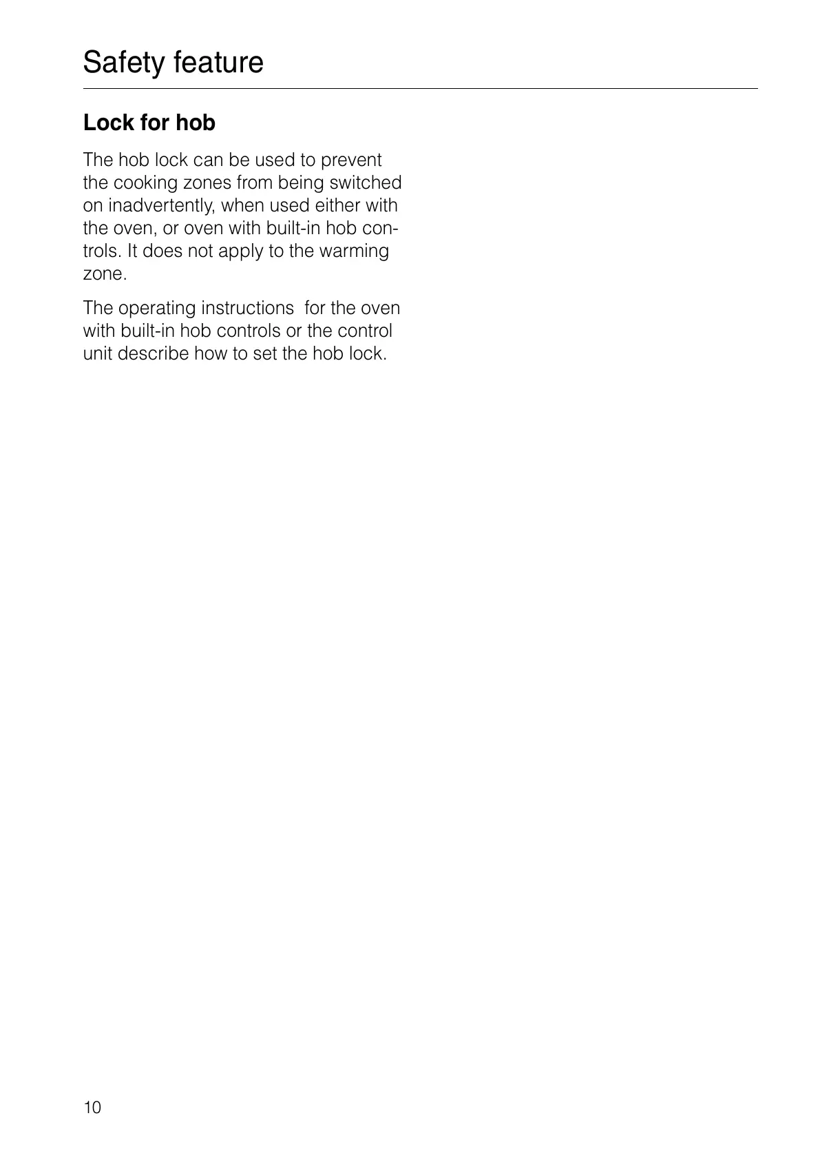 The hob lock can be used to prevent