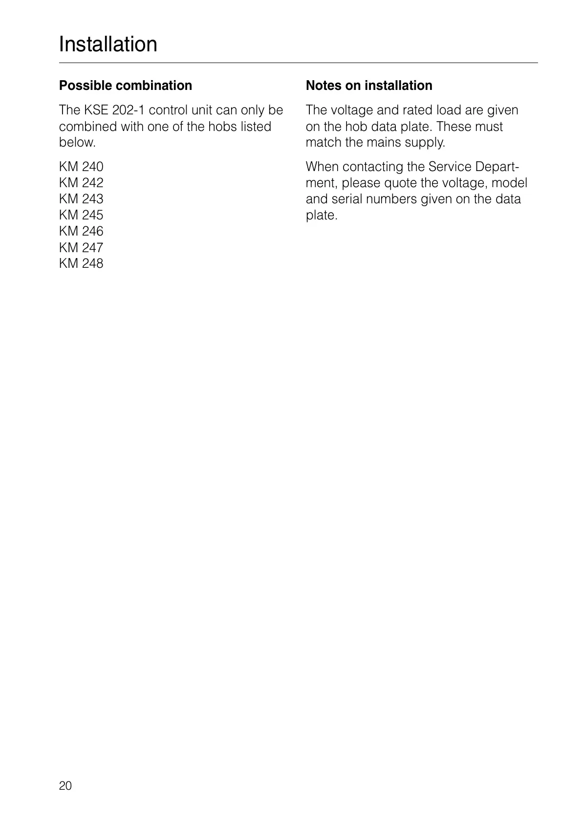 on the hob data plate. These must