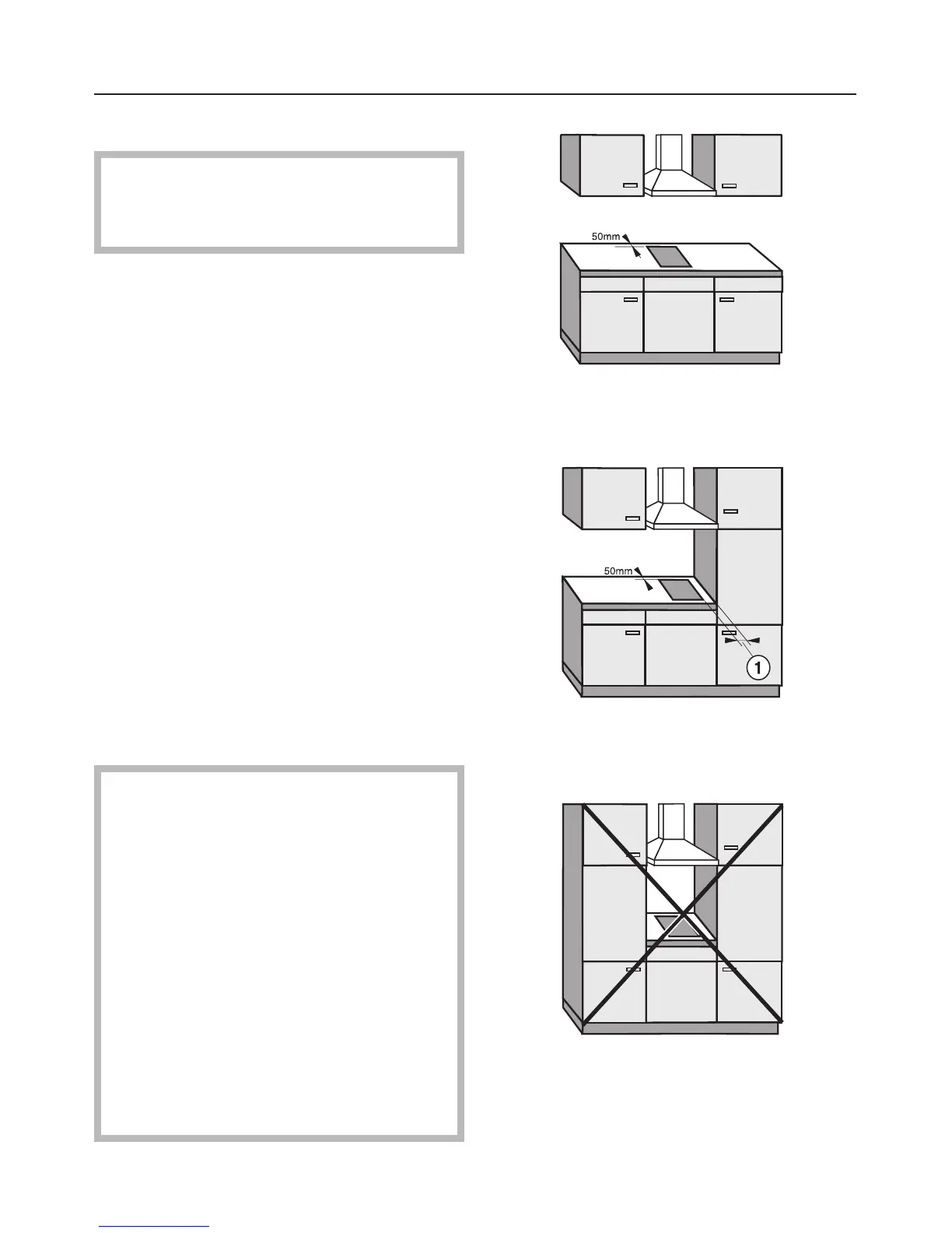distance of 50 mm between the hob